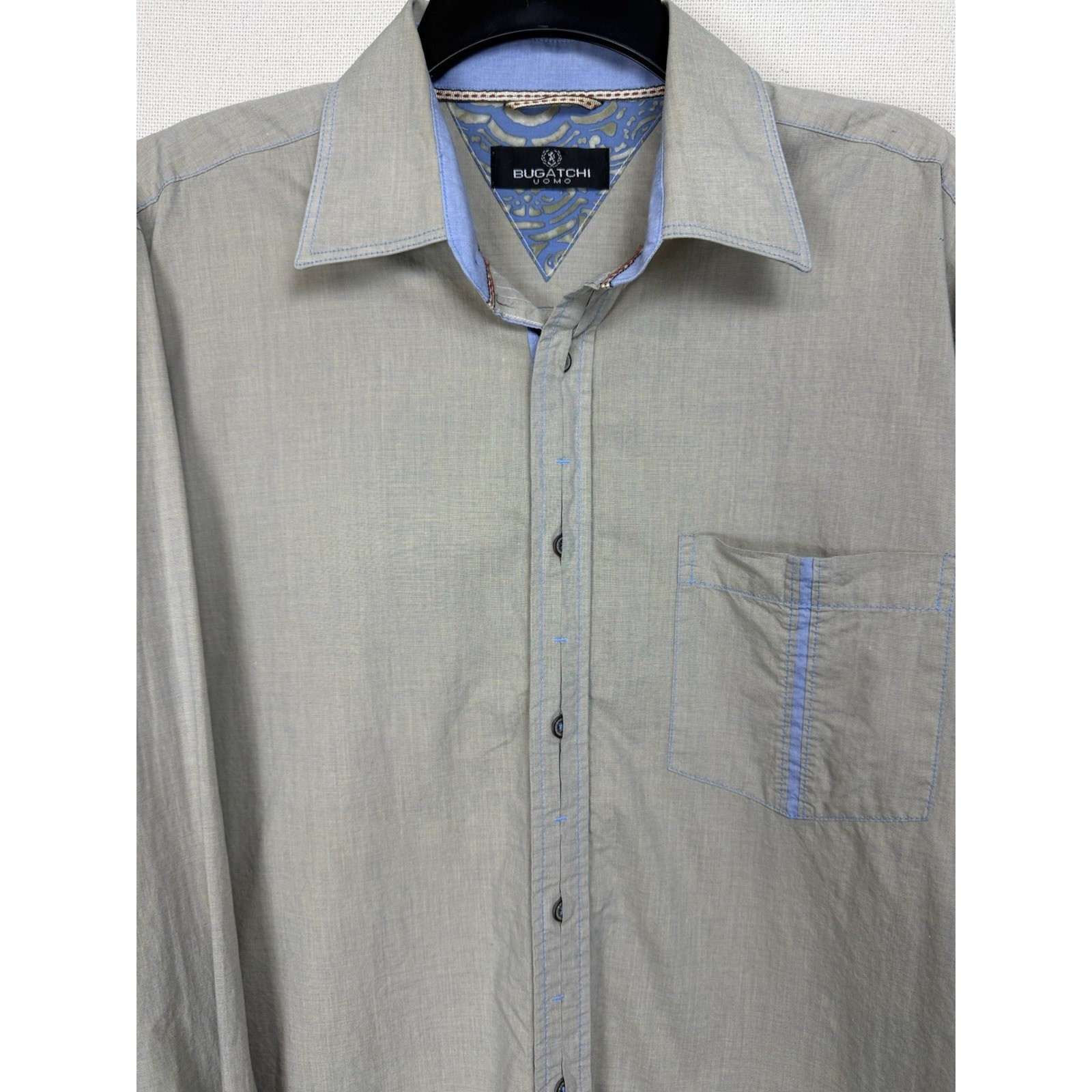 как выглядит Bugatchi UOMO Mens Dress Shirt Sz L Long Sleeve Button Up Flip Cuff Classic фото