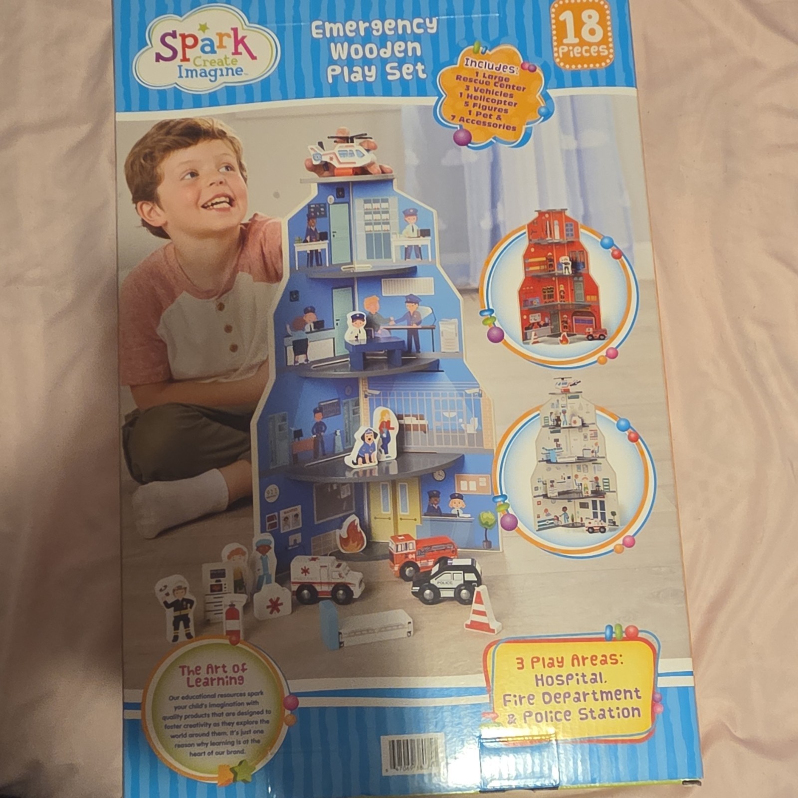 как выглядит Spark Create Imagine Emergency Services Wooden Play Set 18 Pieces 3 Play Areas фото