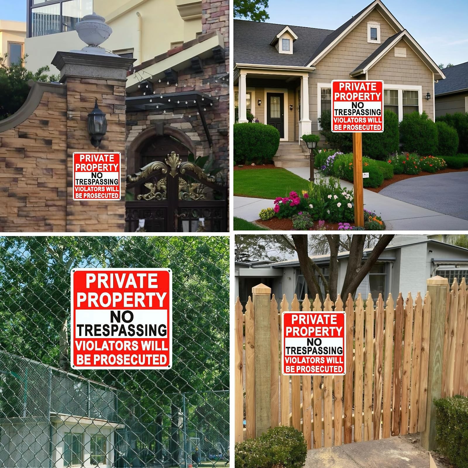 4 Pack Large No Trespassing Signs Private Property, 9.5 Inch x 9.5 Inch Priva...