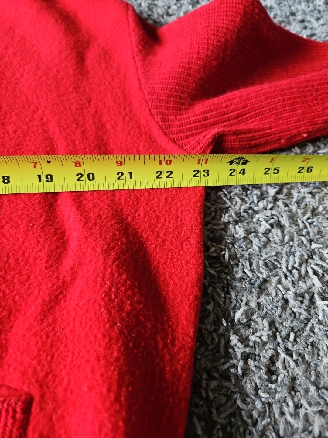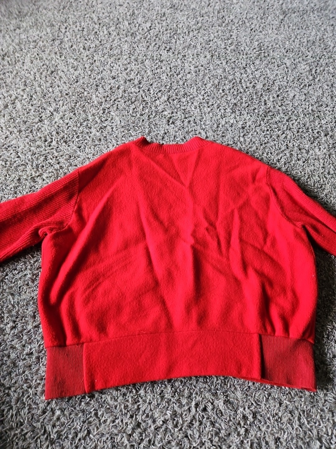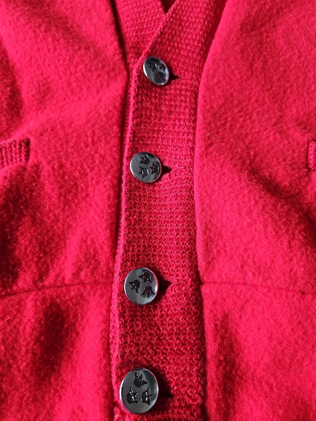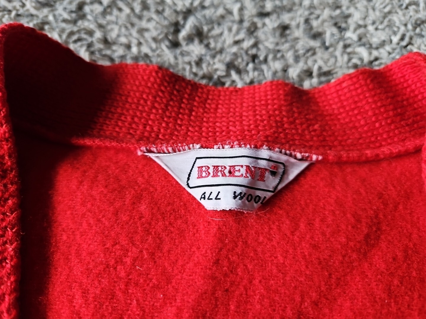 как выглядит Vintage 50s/60s BRENT Wool Montgomery Ward Bright Red Cardigan Sweater фото