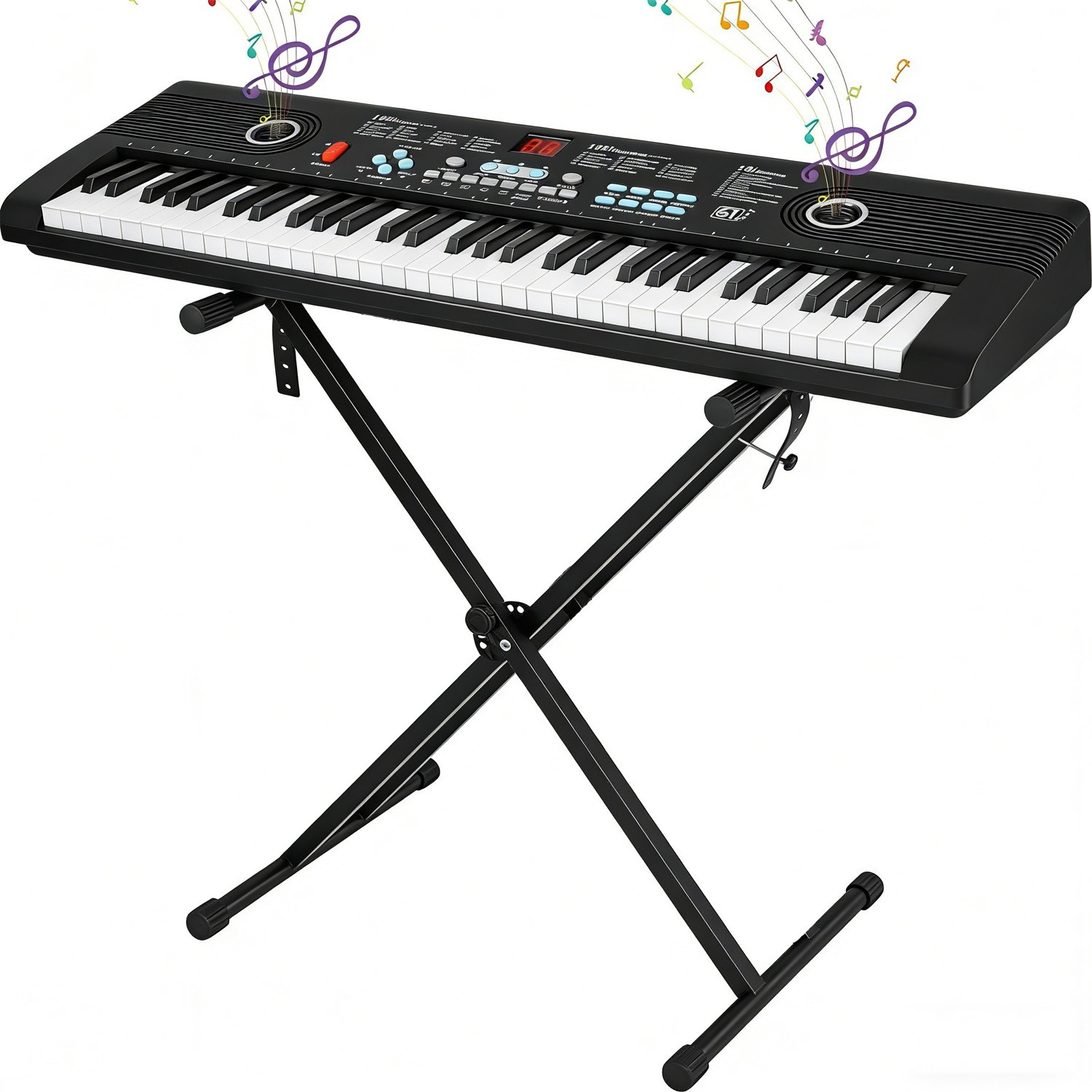 61 Key USB Electronic Digital Piano Keyboard with Stand, Microphone for Beginner