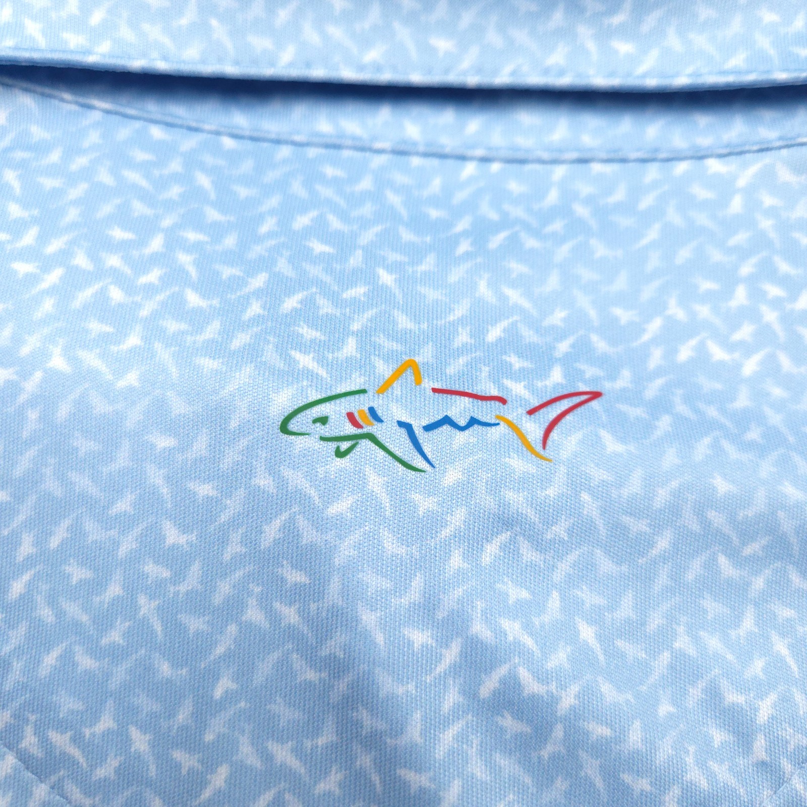 как выглядит NEW GREG NORMAN GOLF POLO SHIRT -L- BLUE WHITE DOT SHARK Poly Soft PERFORMANCE фото