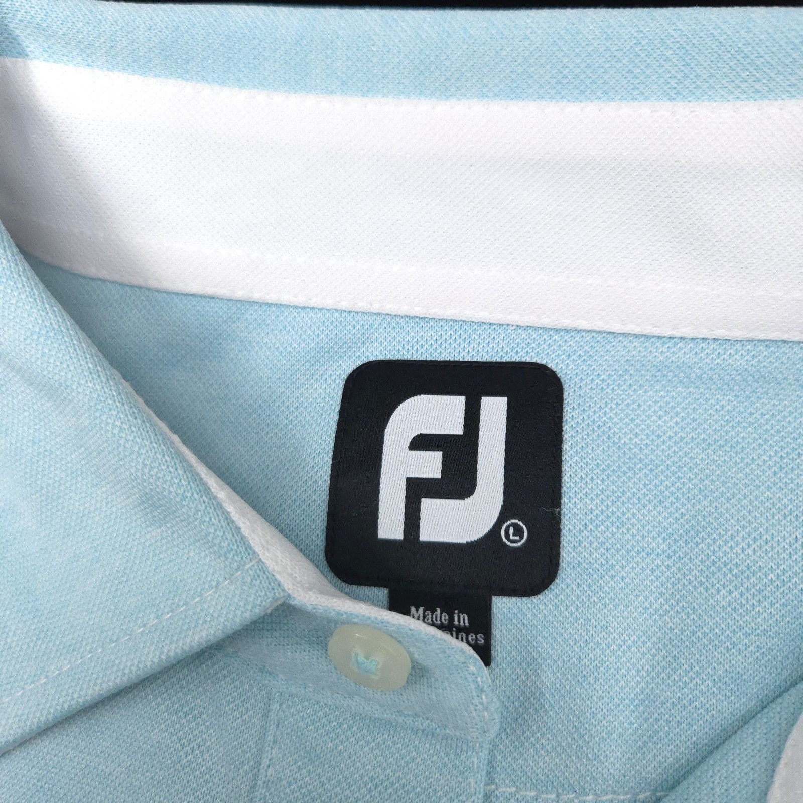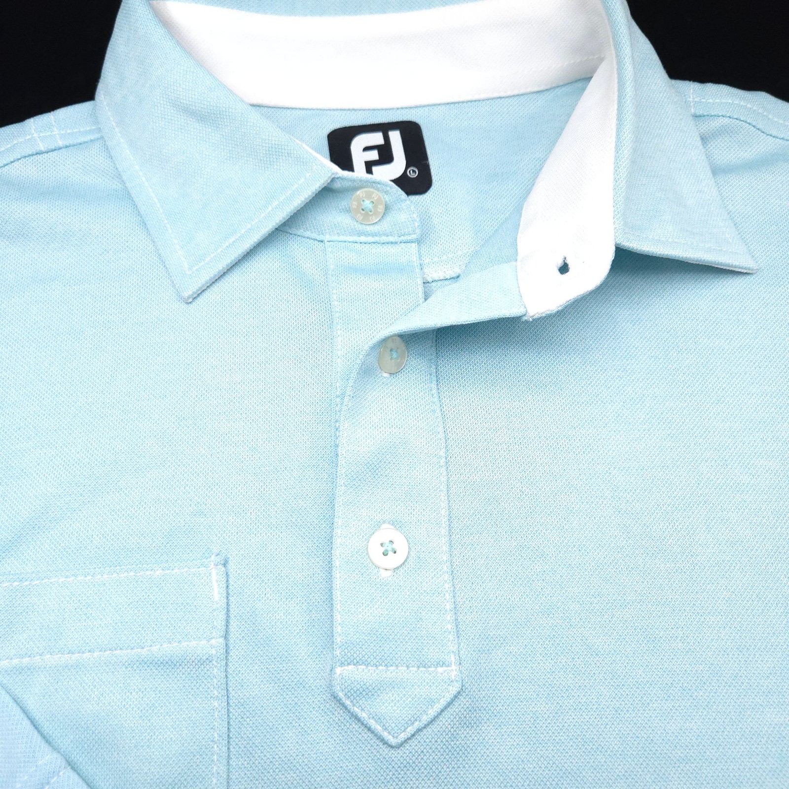 FootJoy Polo Shirt Mens L Light Blue White Pique Golf Performance Pocket Collar