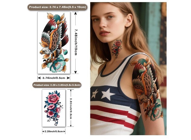 как выглядит 77 Sheets Temporary Tattoos Realistic Old School Stickers Adults Kids фото