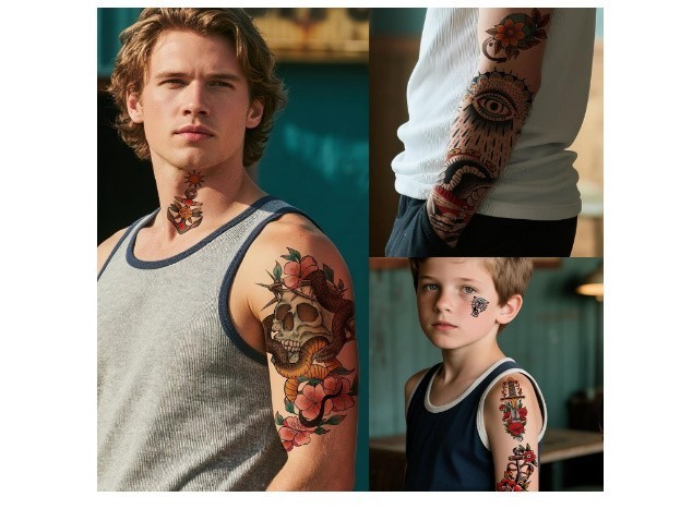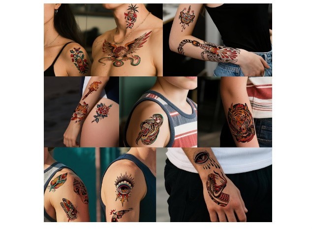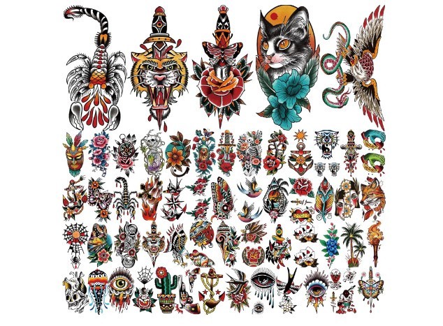 77 Sheets Temporary Tattoos Realistic Old School Stickers Adults Kids