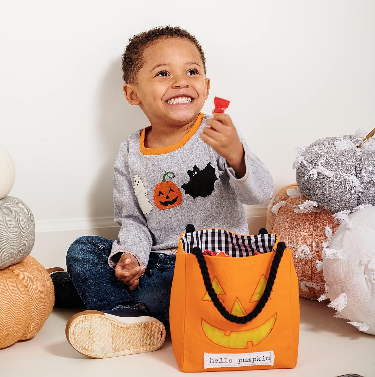 • Children'S Halloween LED Light up Treat-Or-Treat Candy Bag, Pumpkin, 7 1/2" X 7"