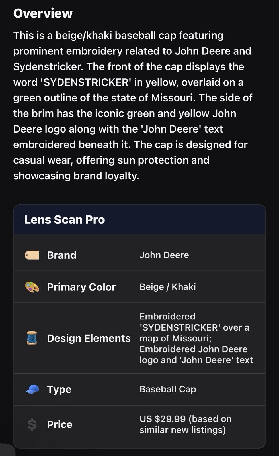 как выглядит John Deere Sydenstricker Dealership Baseball Cap NWOT In Beige/Light Tan Farming фото