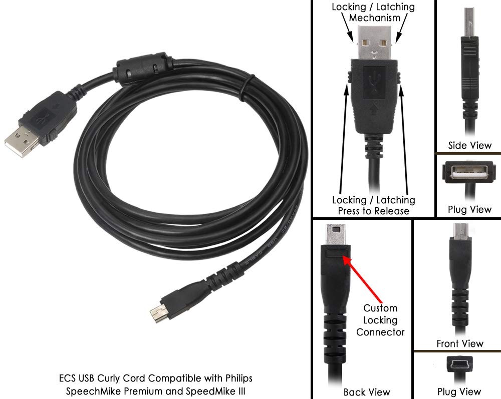 Compatible for SpeechMike Premium and SpeechMike III Curly Cord USB Type A to...