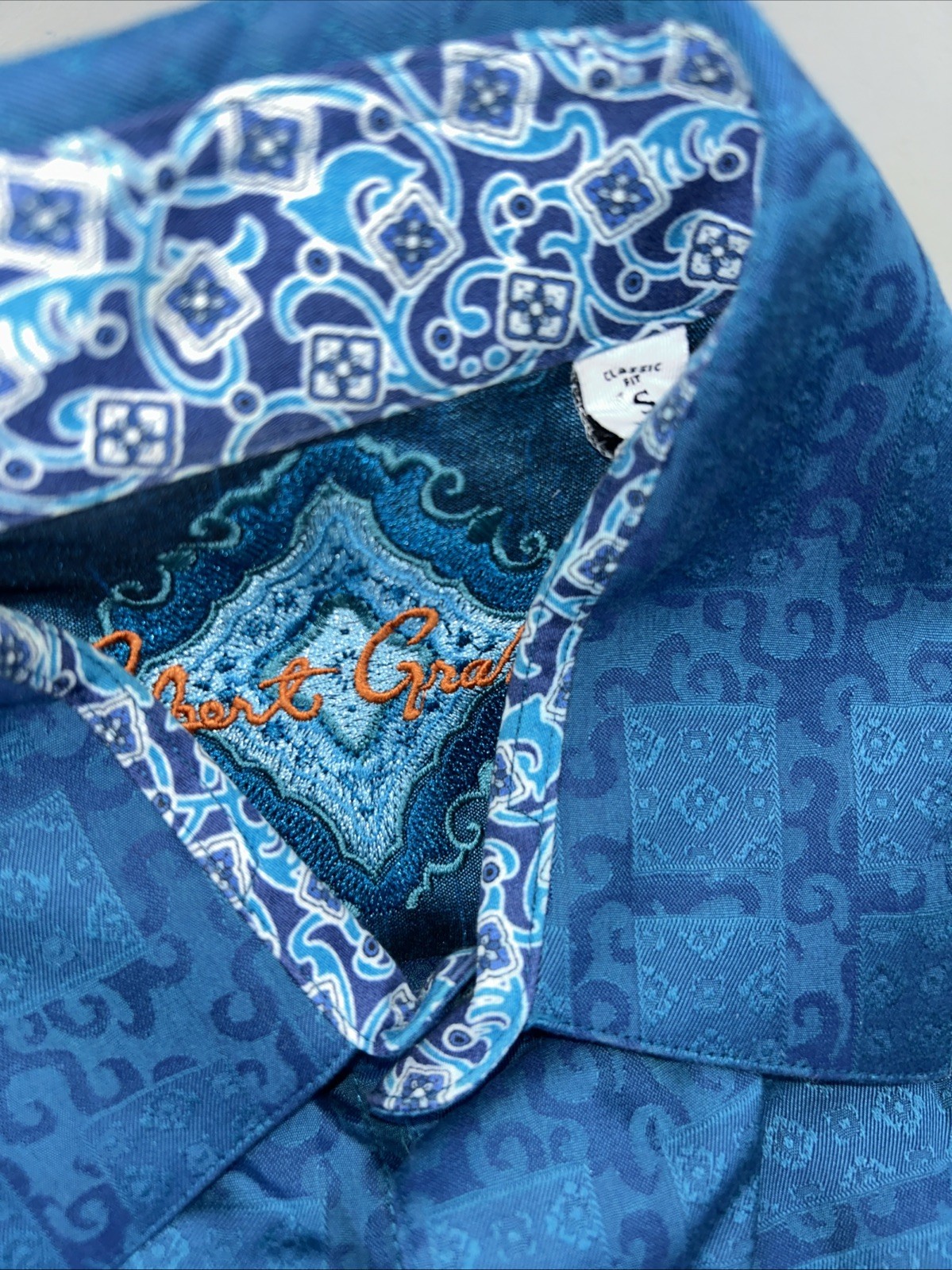 как выглядит Robert Graham Flip Cuff Geometric Blue Plaid Button Up Men s Small фото