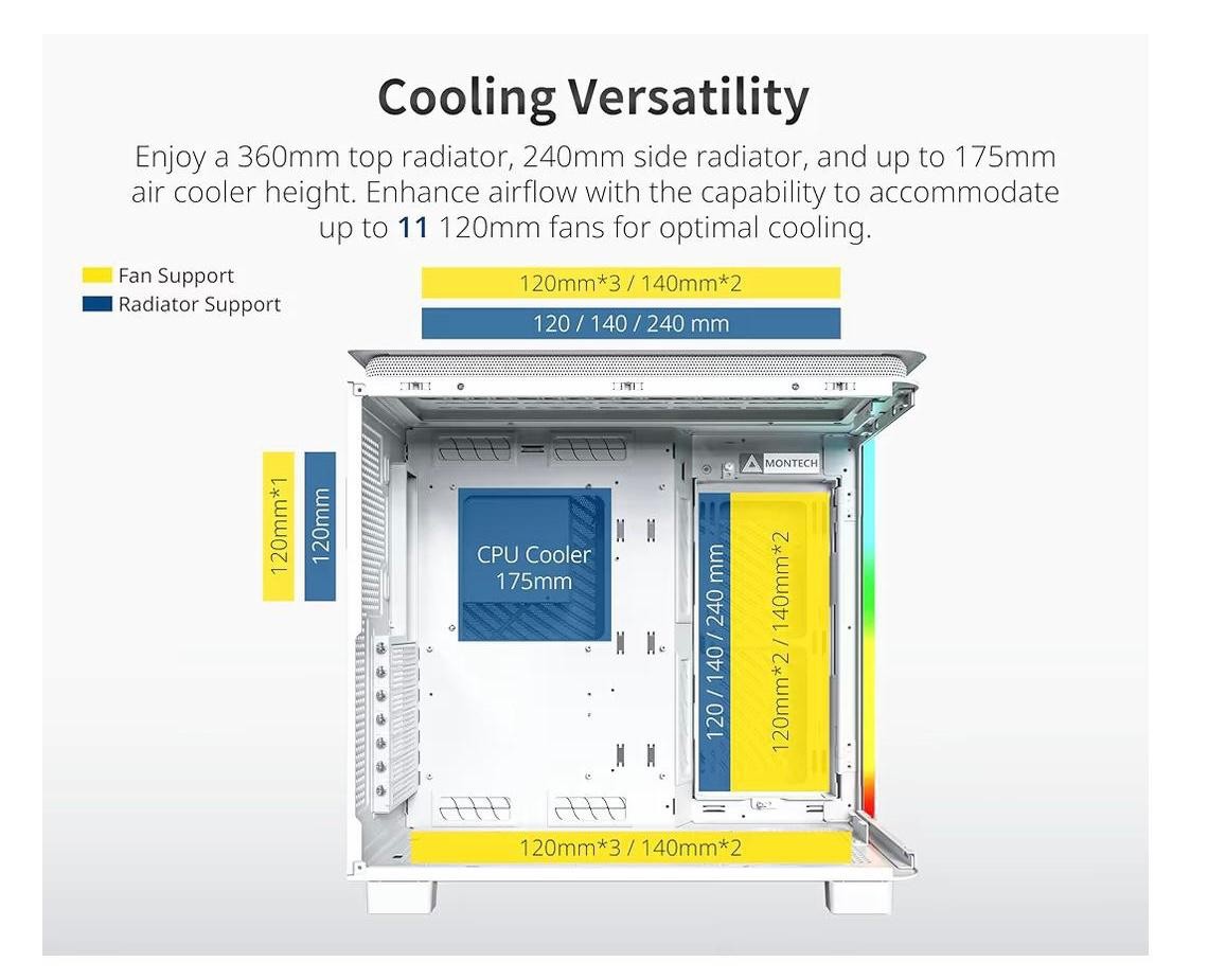 MONTECH KING 95 PRO W Dual-Chamber ATX Mid-Tower PC Gaming Case White