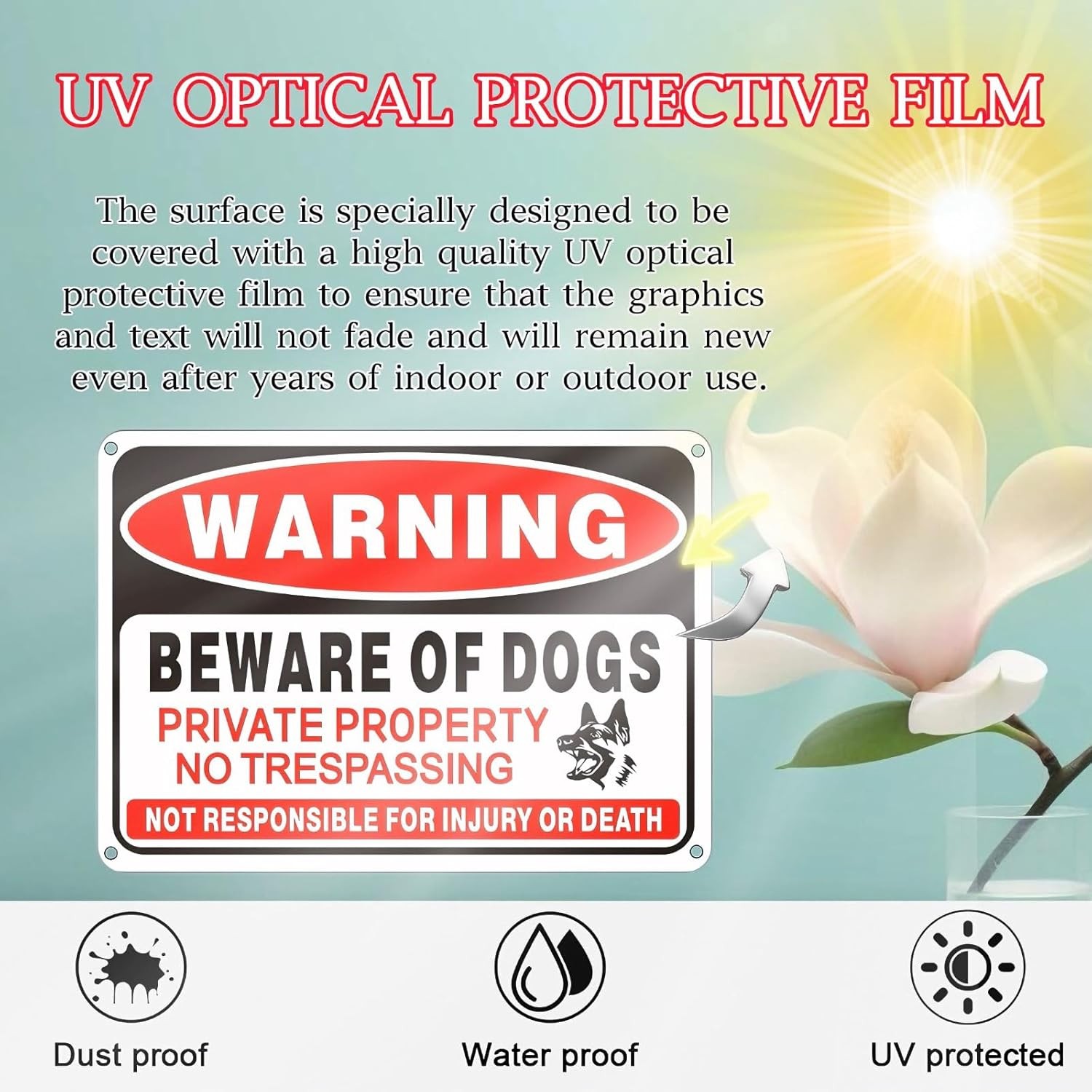 как выглядит 4 Pack Beware of Dog Sign,10x7 inch High Reflective Beware of Dog Signs for Fenc фото