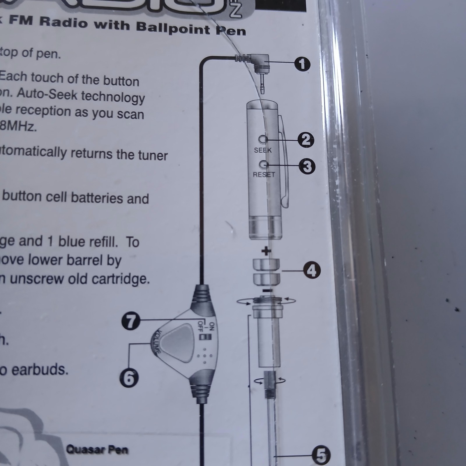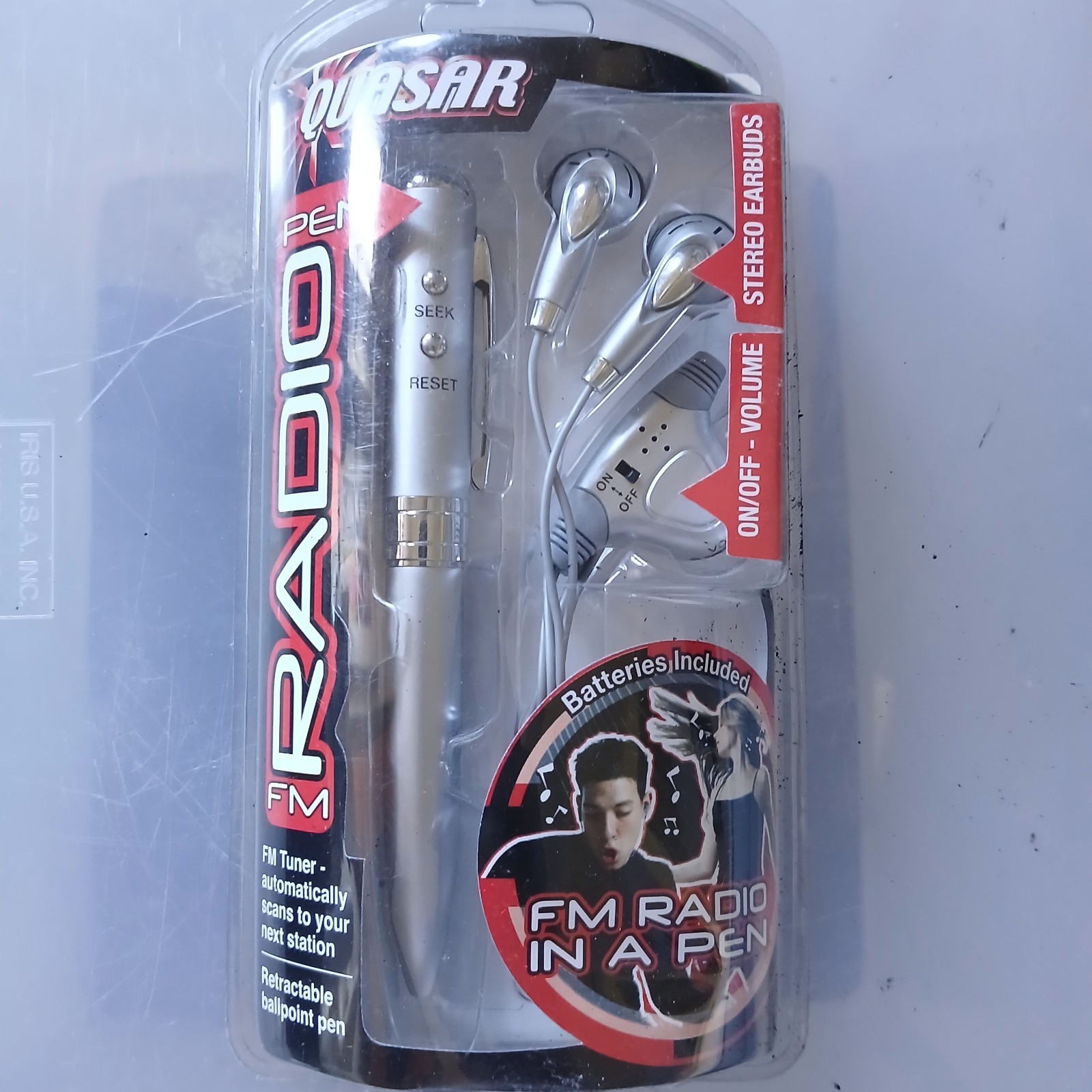 как выглядит NEW Quasar FM Radio in a Pen with Stereo Earbuds Silver 2003 Vintage NOS фото