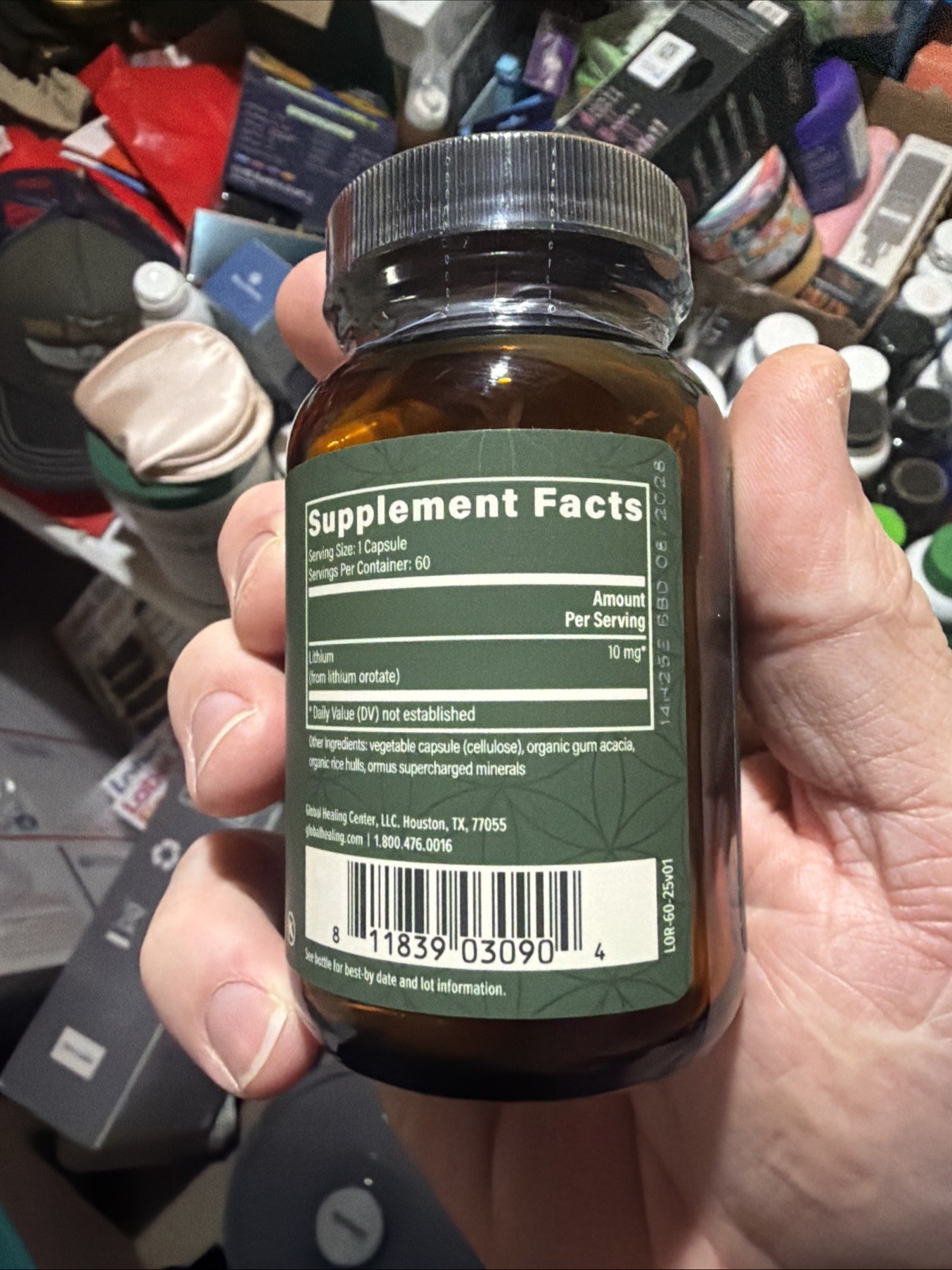 Lithium Orotate 10mg Supplement Brain Mood Health Glass Jar, 60 capsules