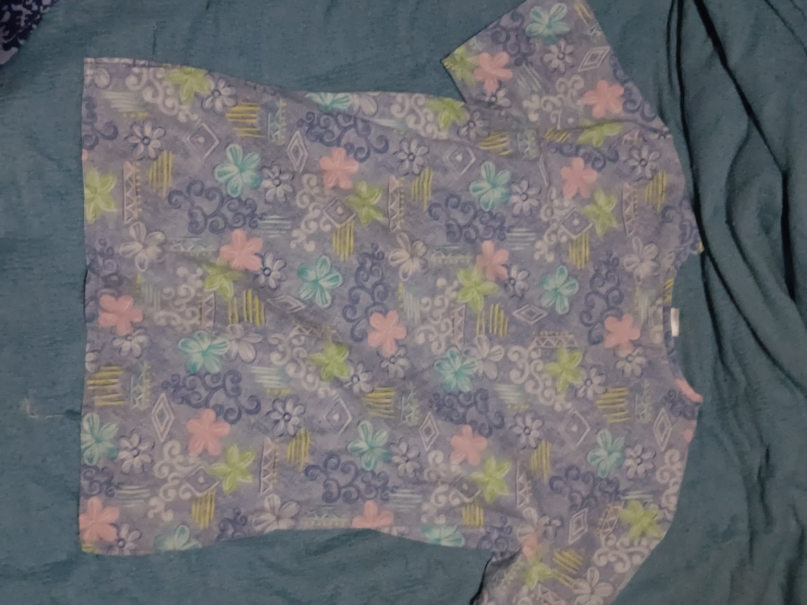 как выглядит SB Scrubs Scrub Top Size S Pastel Floral Geometric Pockets Medical Uniform фото