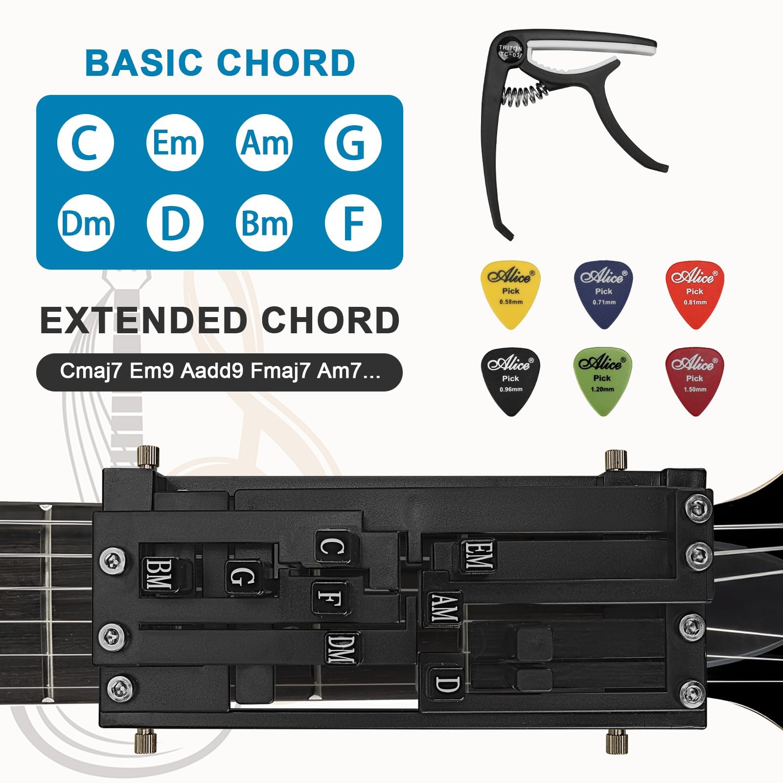 Guitar Chord Presser, Beginner Guitar Learning Tool with 11 Chords, Capo Pi...