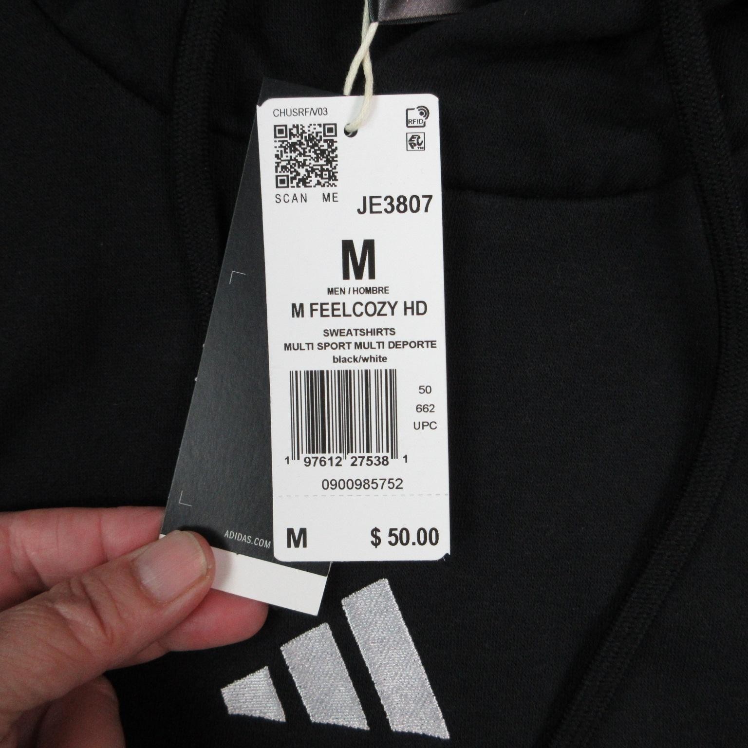 Adidas Hoodie Sweatshirt Mens M Black Feelcozy HD Pullover Fleece Logo NWT