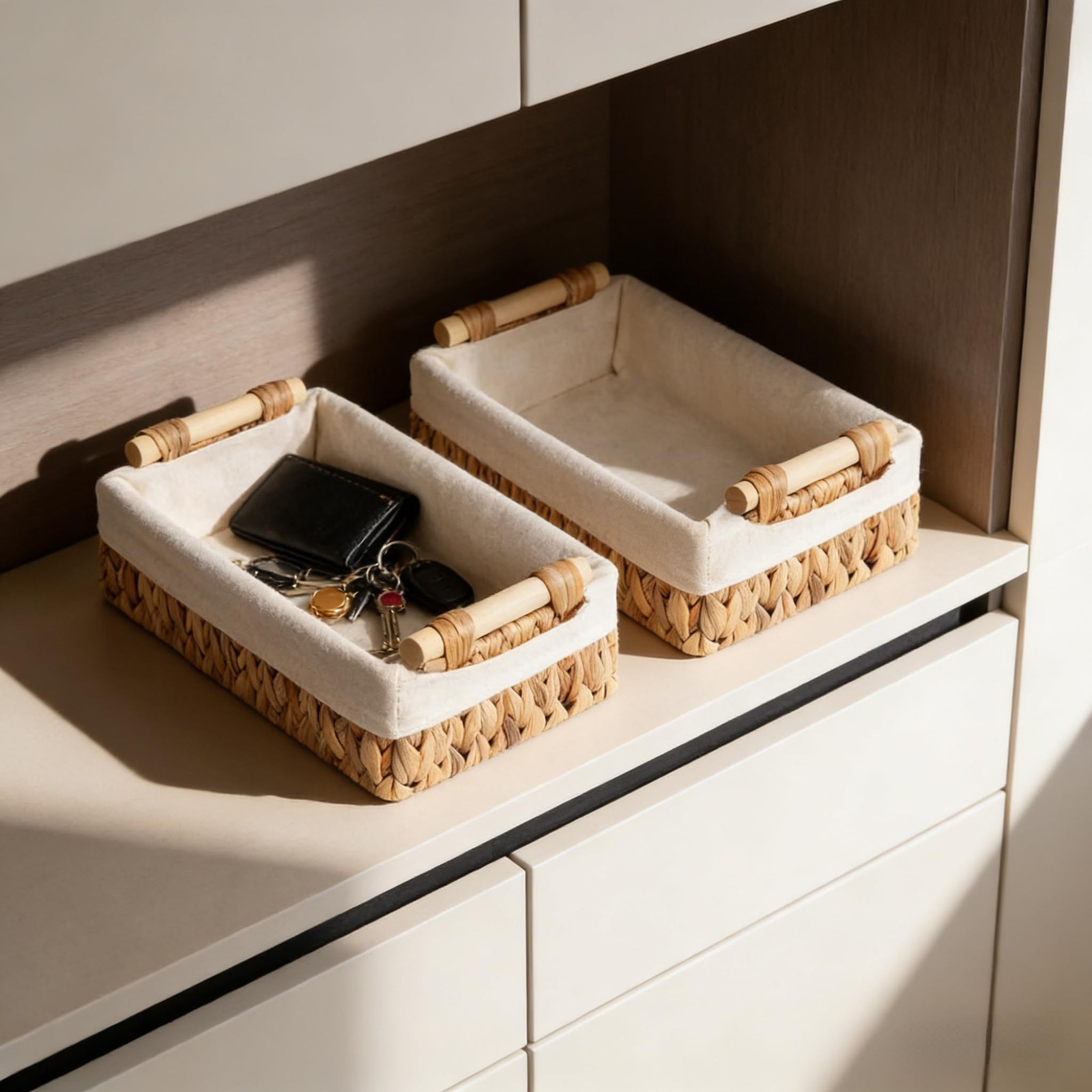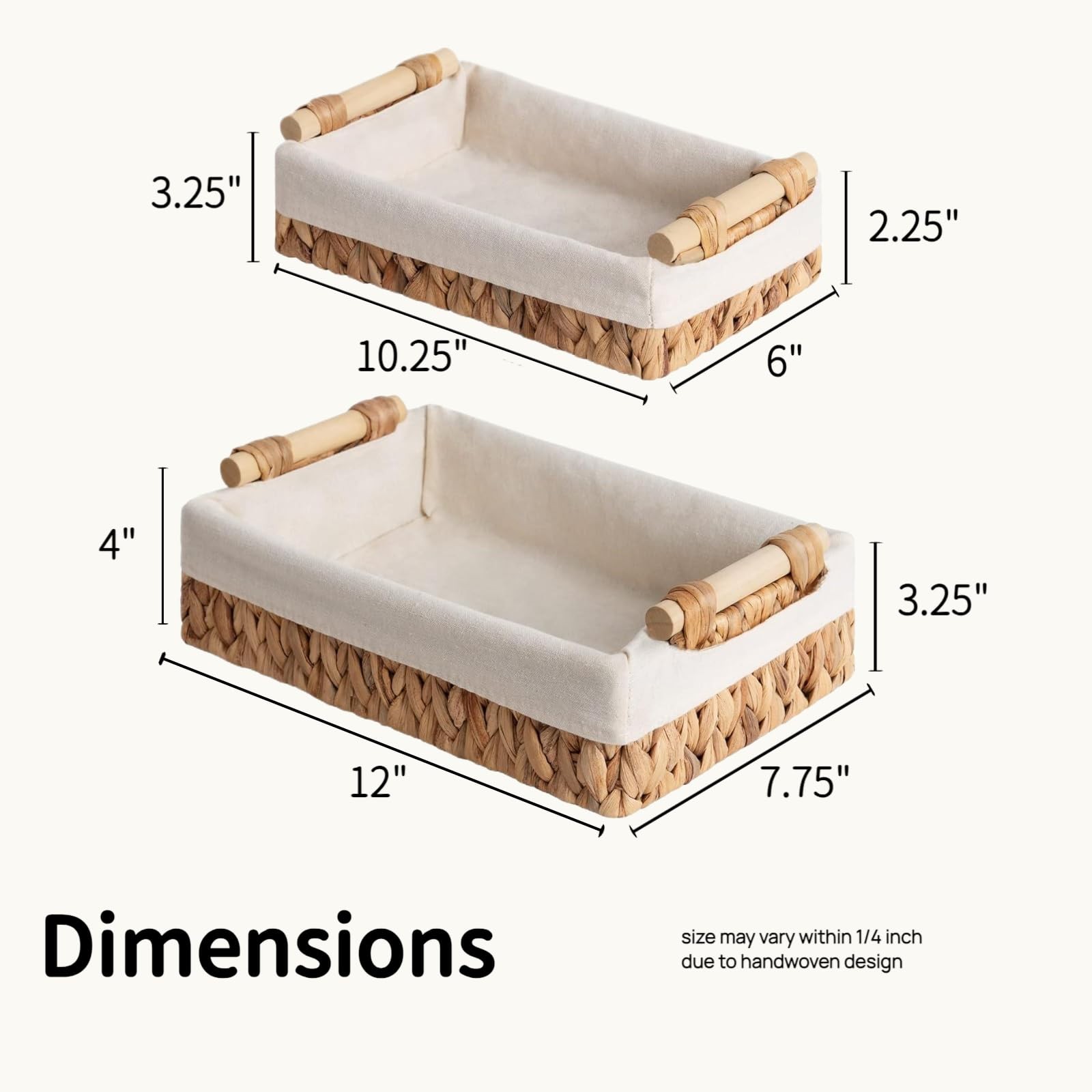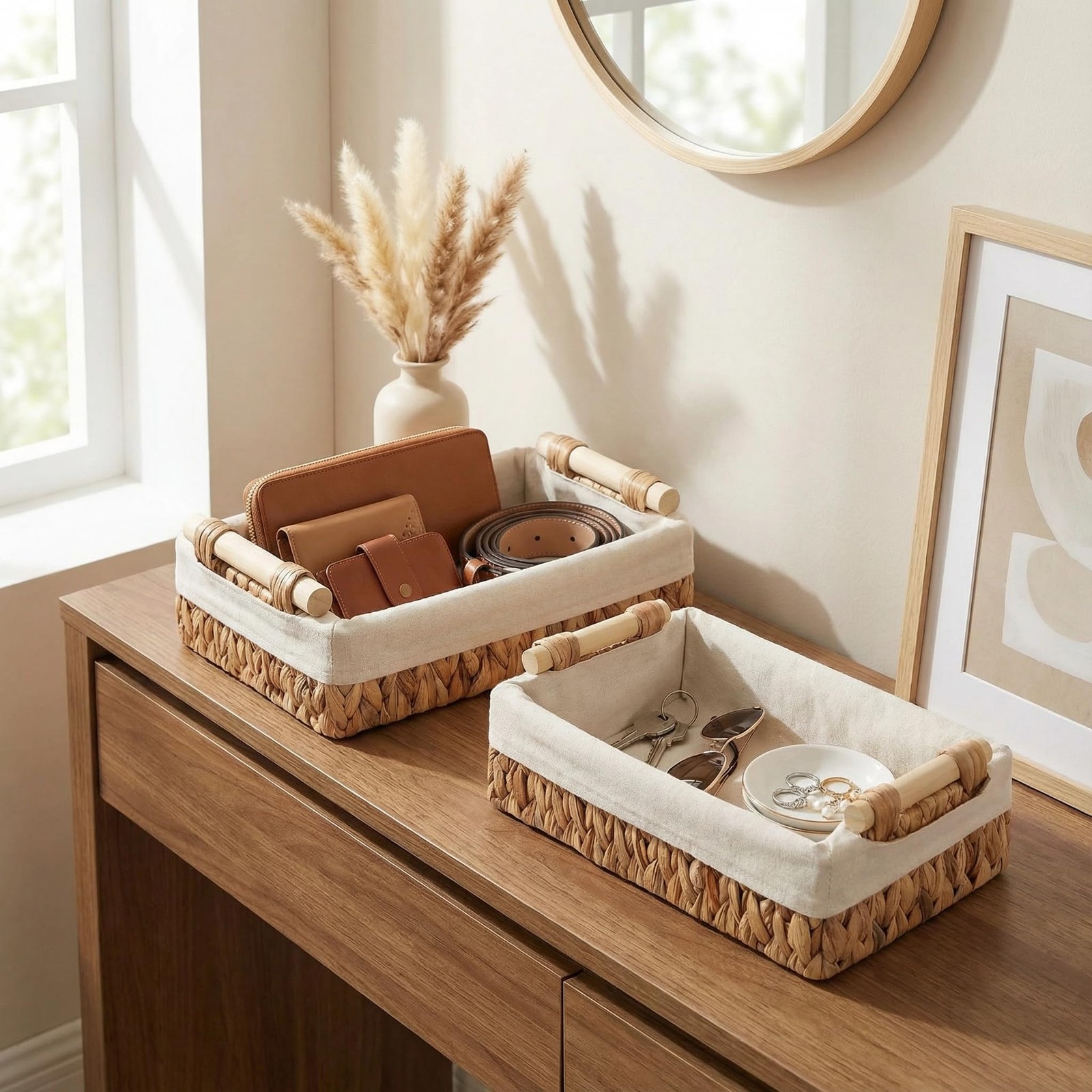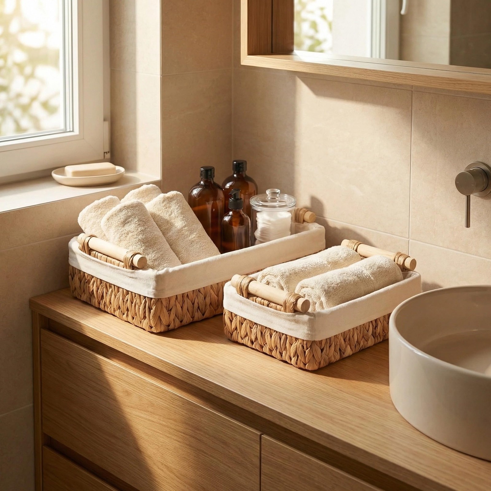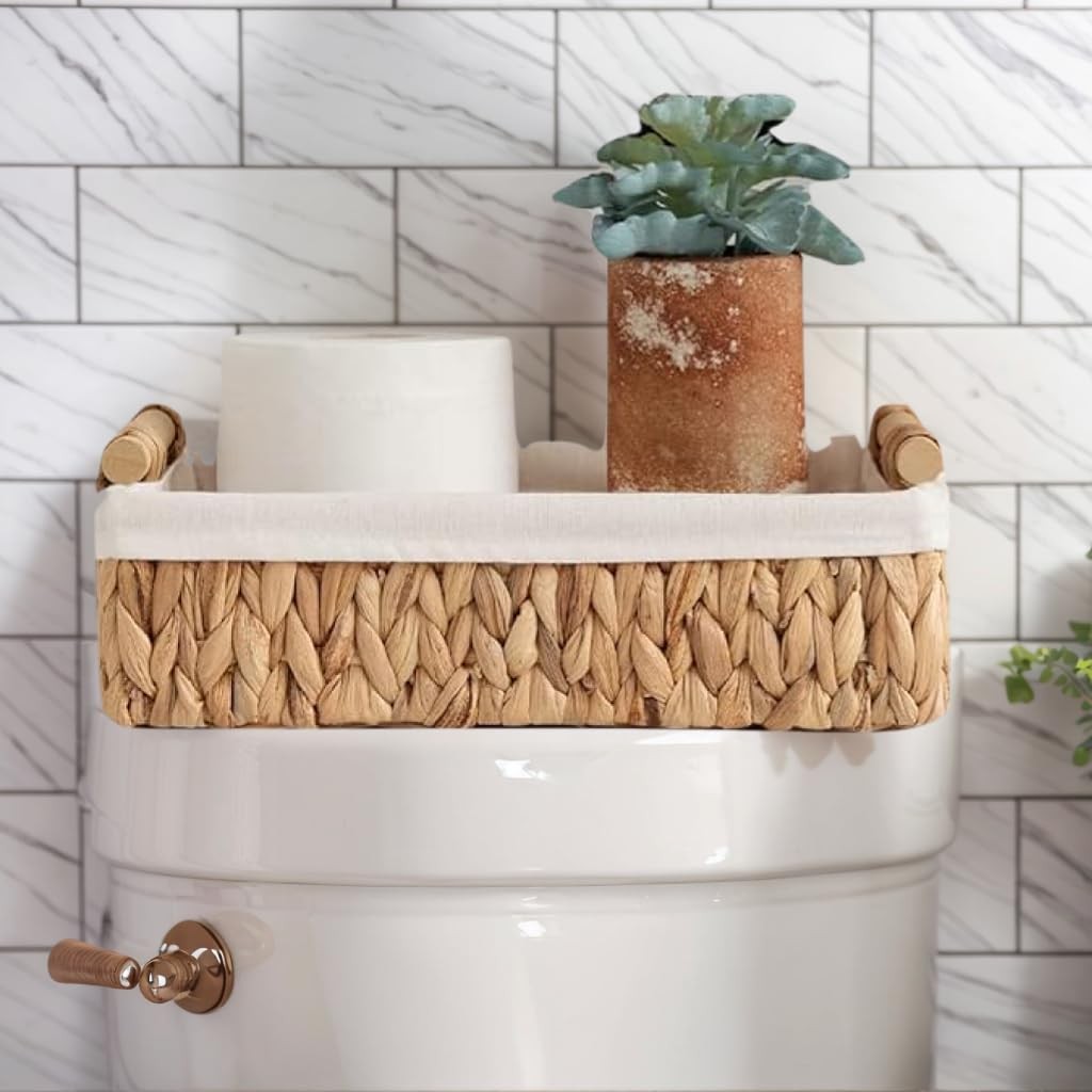 Baskets for Organizing, Set of 2 Natural Water Hyacinth Bathroom Countertop B...