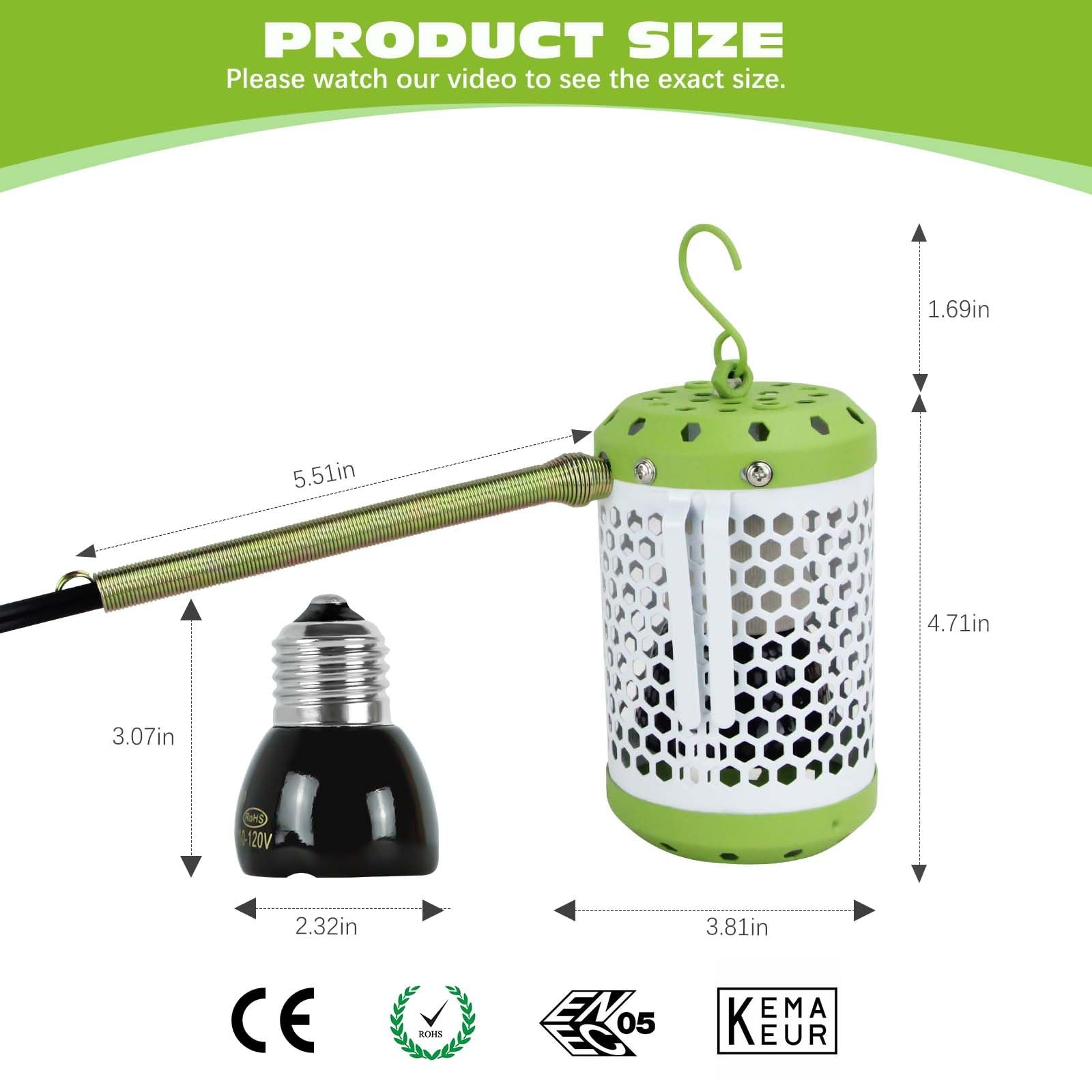 Reptile Heat Lamp with Guard, Ceramic Heat Lamp Bulb with Lampshade, Adjustab...