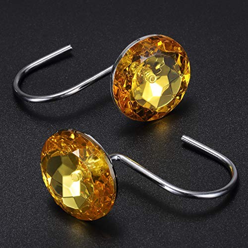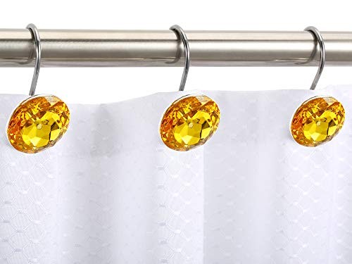 Gold Shower Curtain Hooks Rings Crystal,Diamond Decorative Shower Yellow