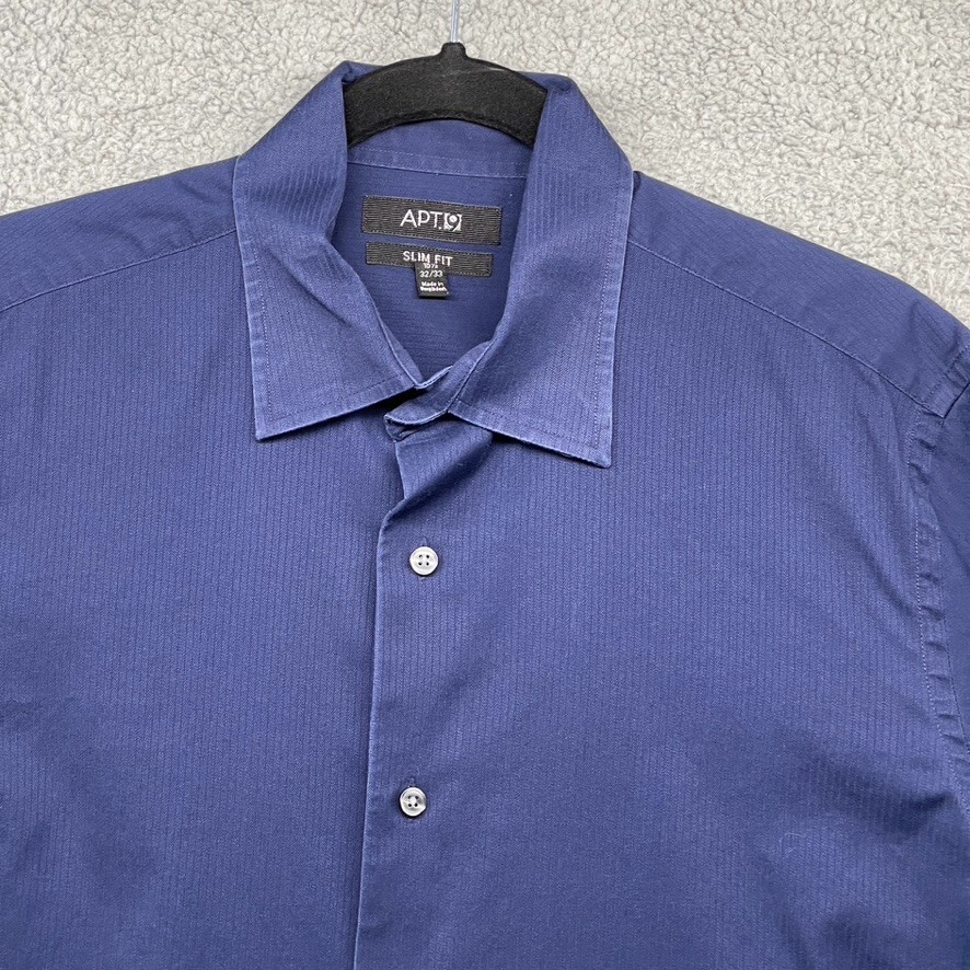 как выглядит APT 9 Mens Dress Shirt Blue Button Down Slim Fit Long Sleeve Size 16.5 32/33 фото
