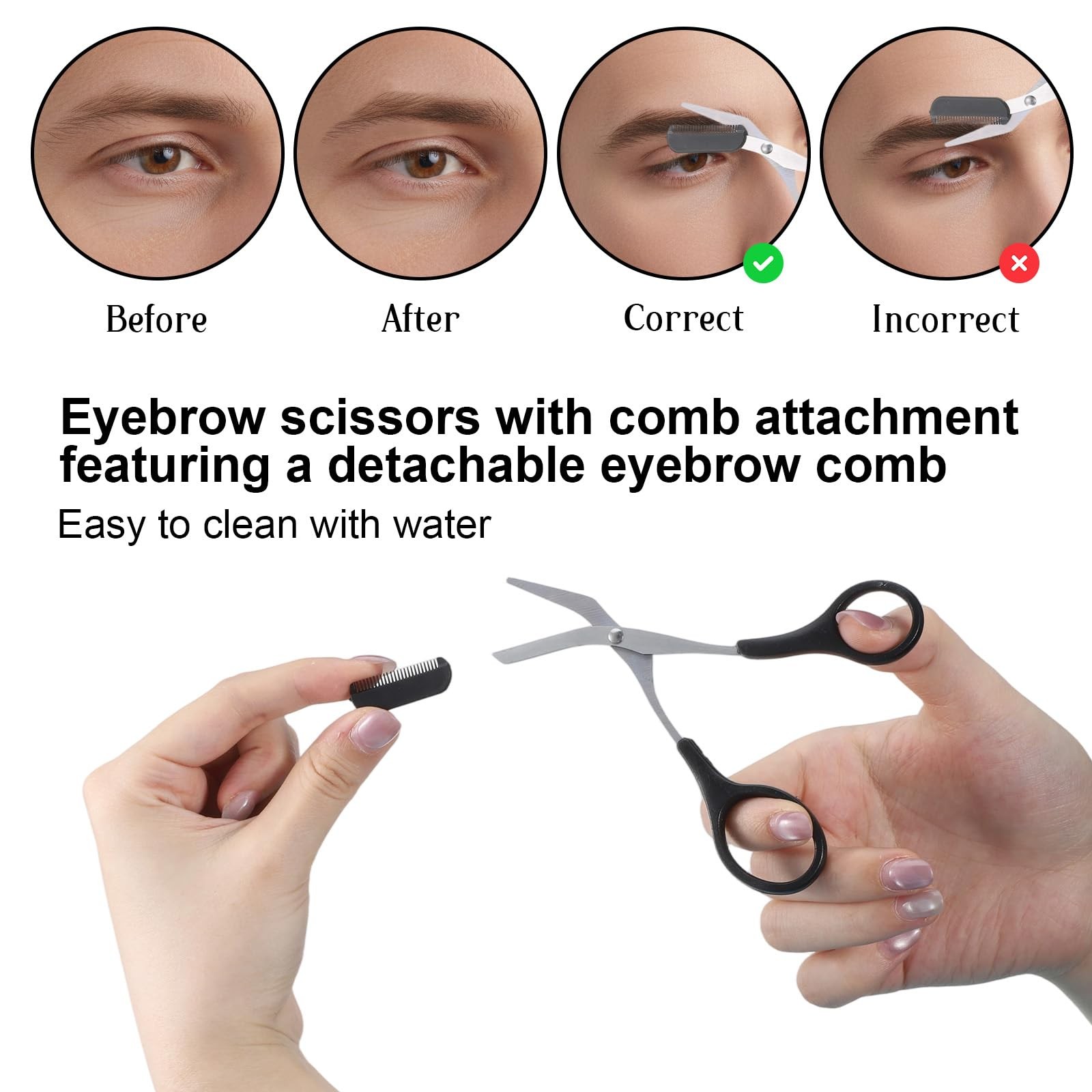3 Pcs Eyebrow Scissors with Comb, Eyebrow Trimmer Scissors for Women and Men,...