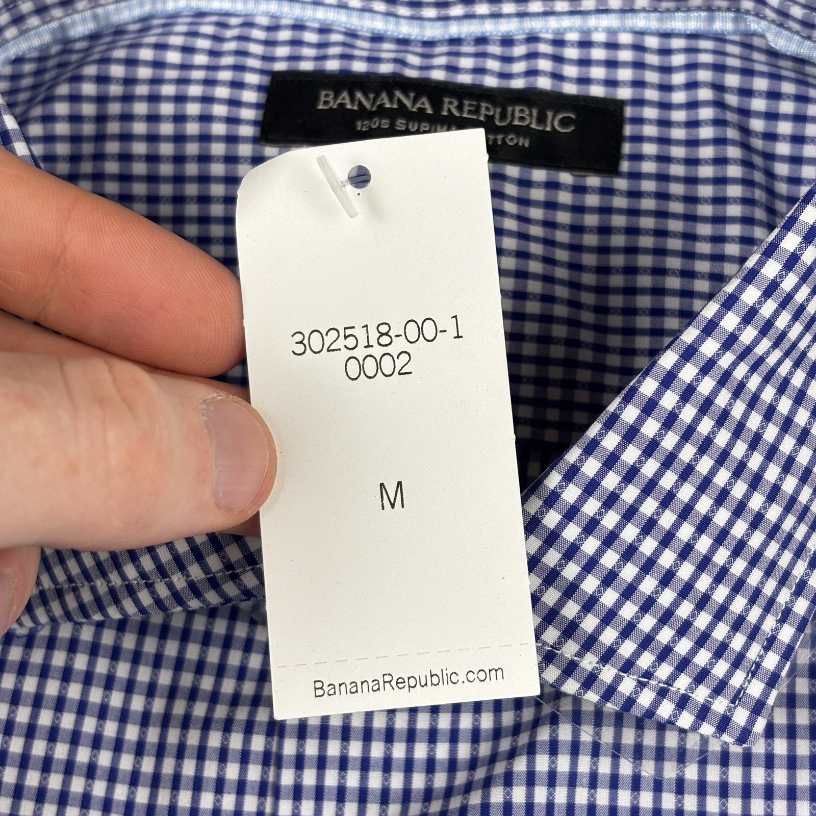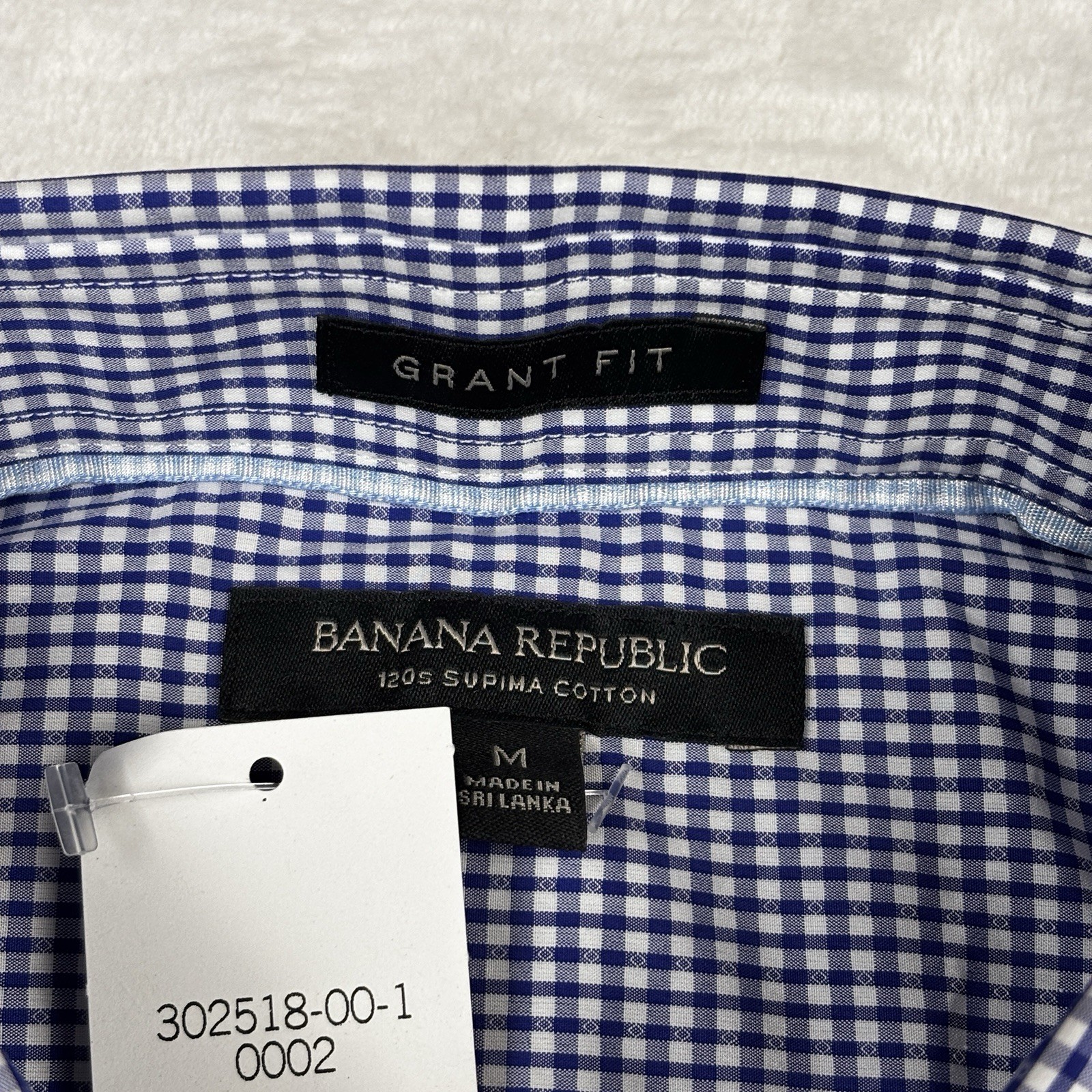 как выглядит NWT Banana Republic Dress Shirt Mens M Blue Check Grant Fit 120s Supima Cotton фото