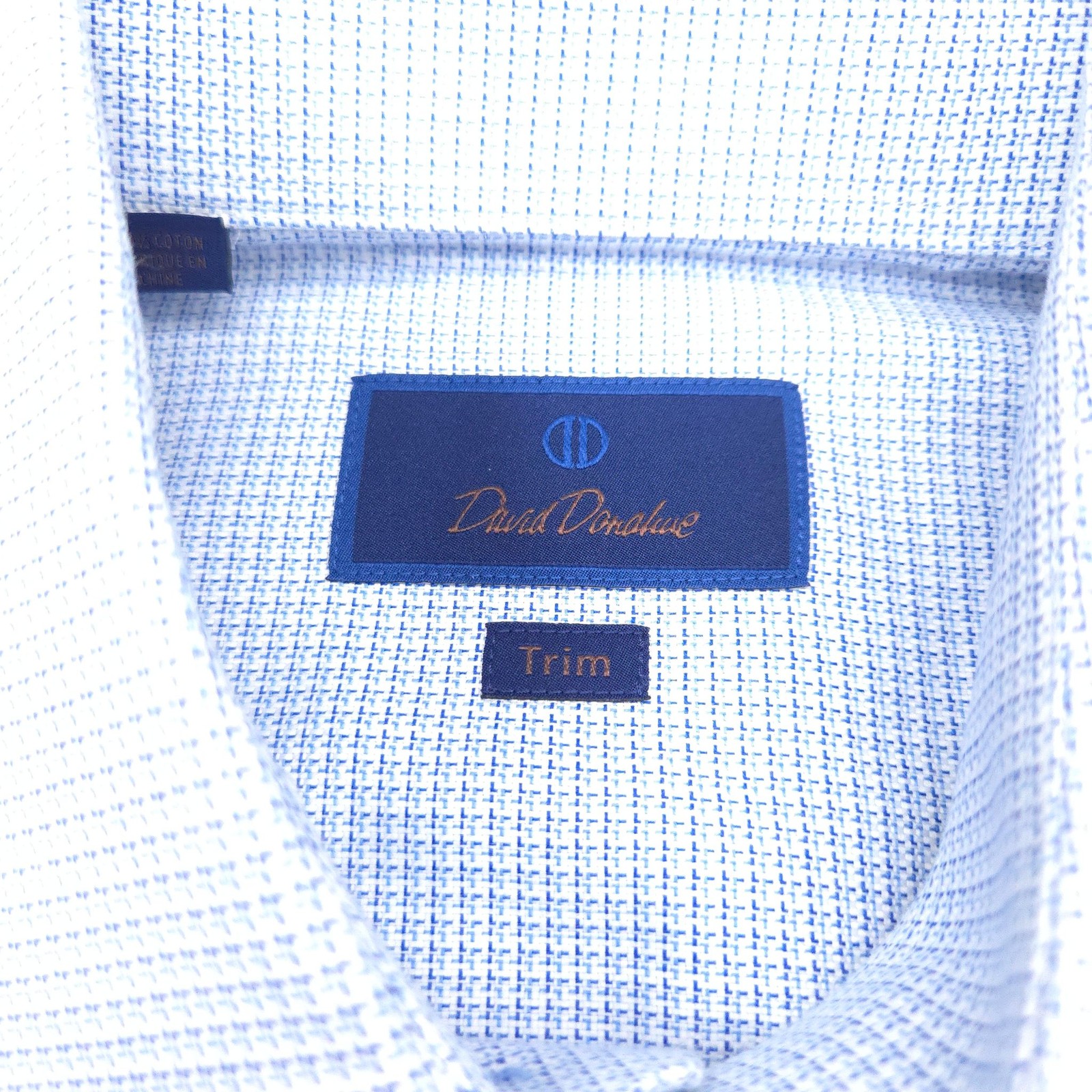 как выглядит David Donahue Dress Shirt Mens 16 34/35 Trim Slim Fit White Blue Pinpoit OXFORD фото