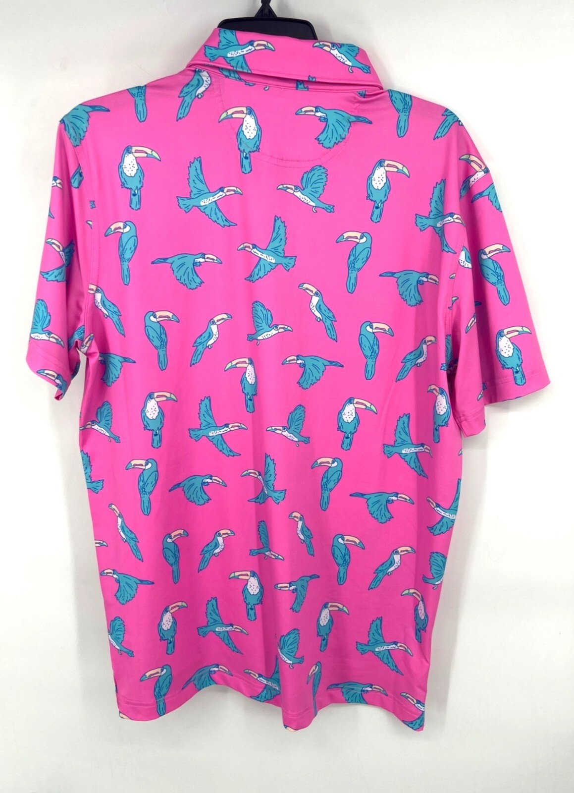 как выглядит Chubbies Mens Performance Polo 2.0 The Toucan Do It Size Medium Hot Pink фото