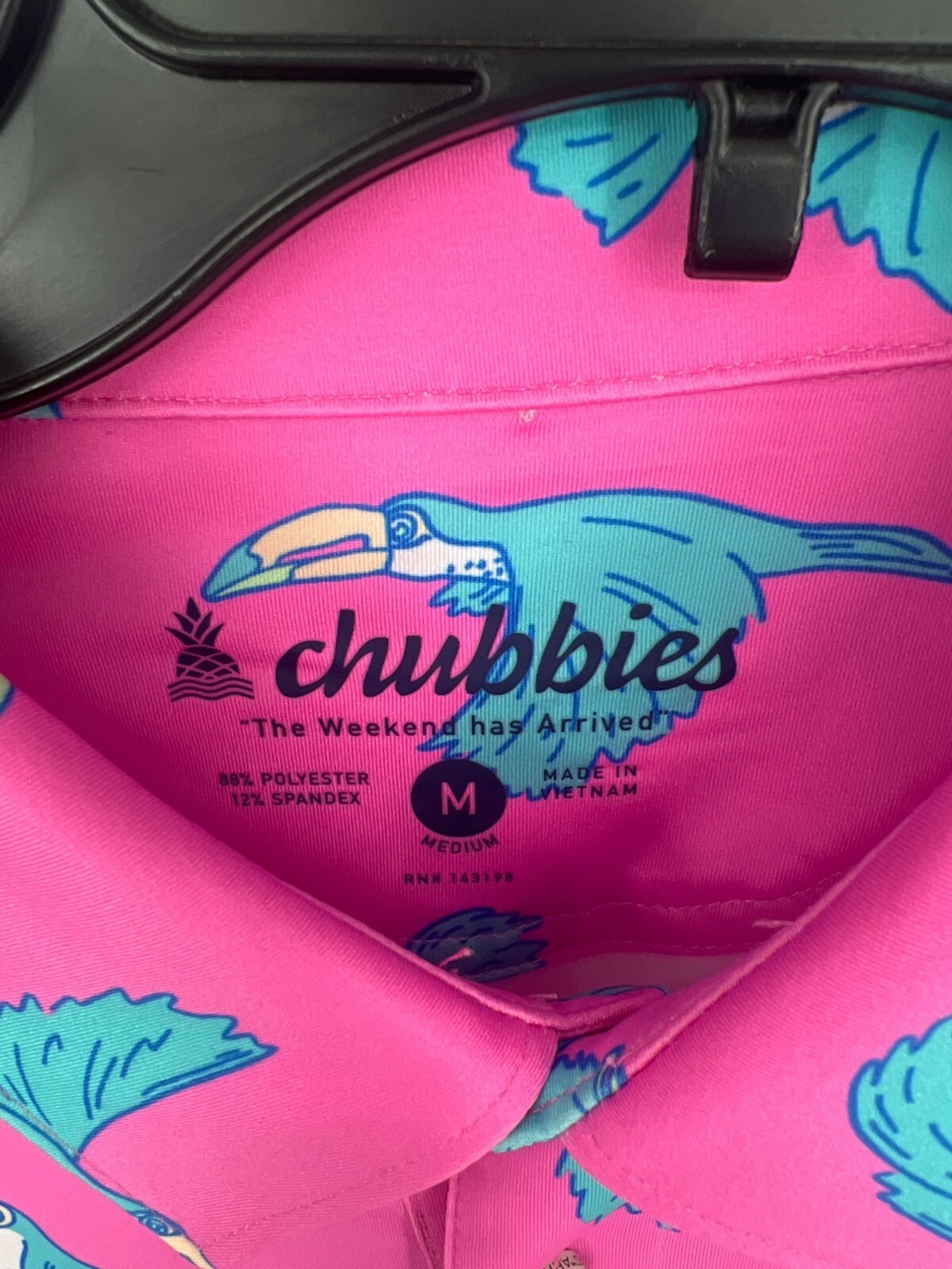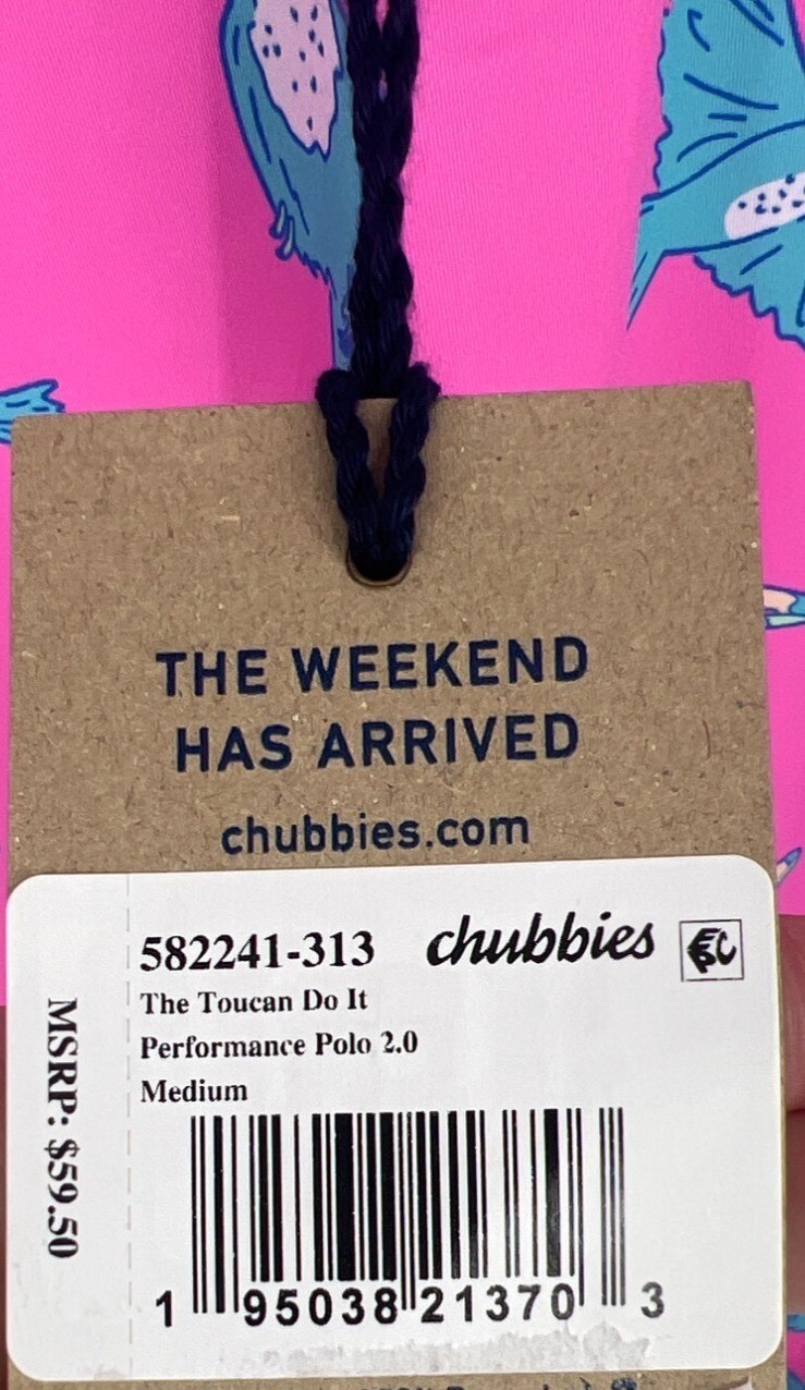 Chubbies Mens Performance Polo 2.0 The Toucan Do It Size Medium Hot Pink