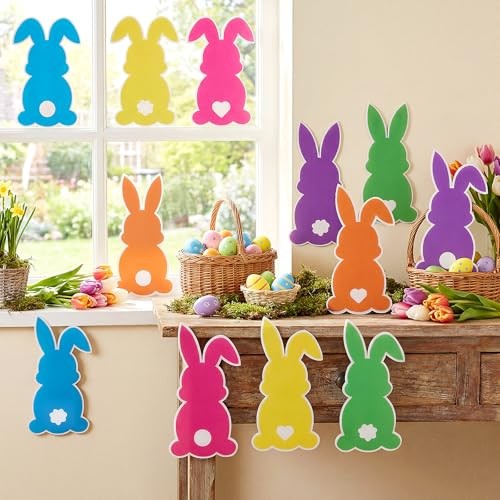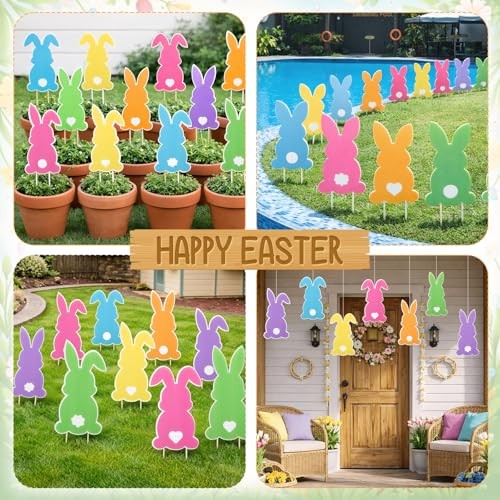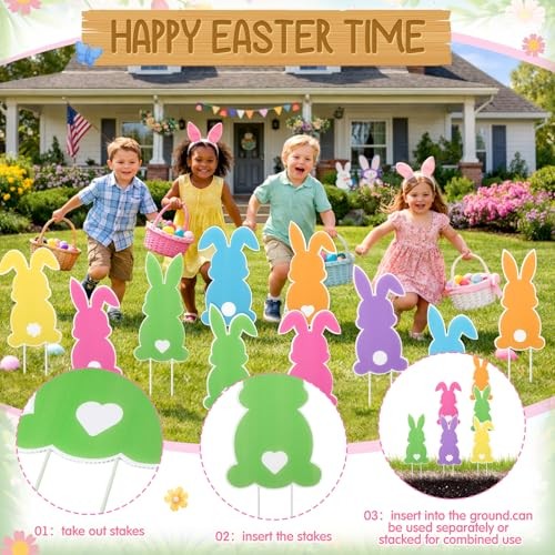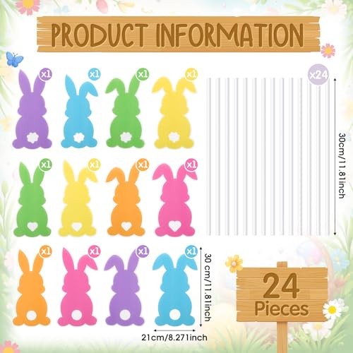 12 Pcs Easter Yard Outdoor Decoration Bunny Signs with Stakes Large Size Waterpr