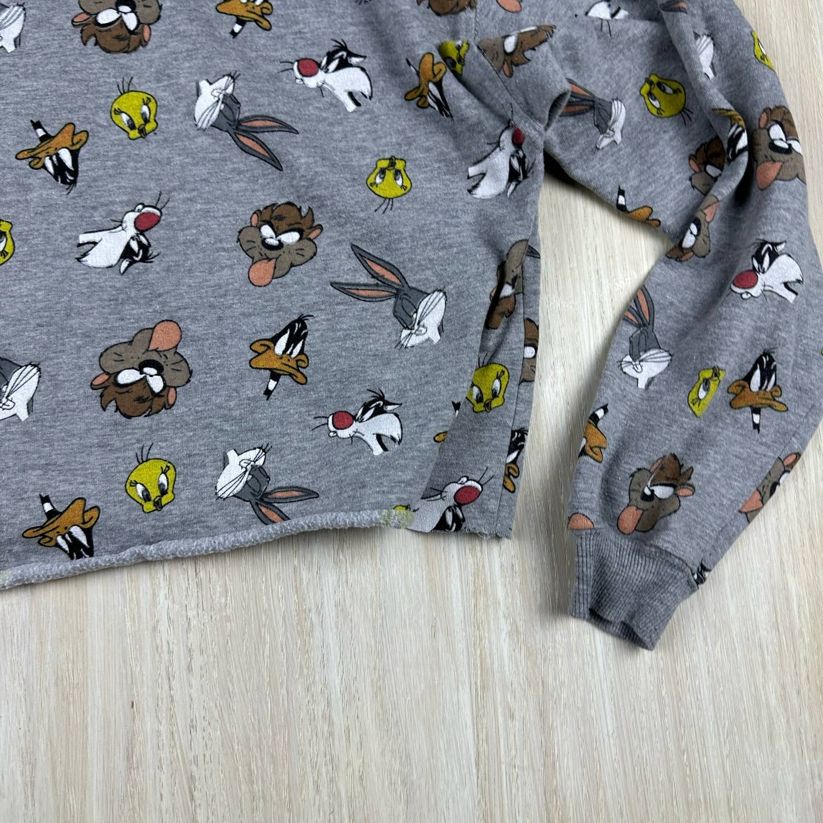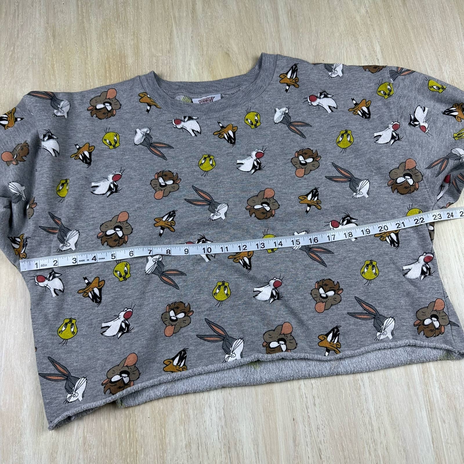 Looney Tunes All Over Print Cropped Crew Neck Pullover Sweatshirt Size XL
