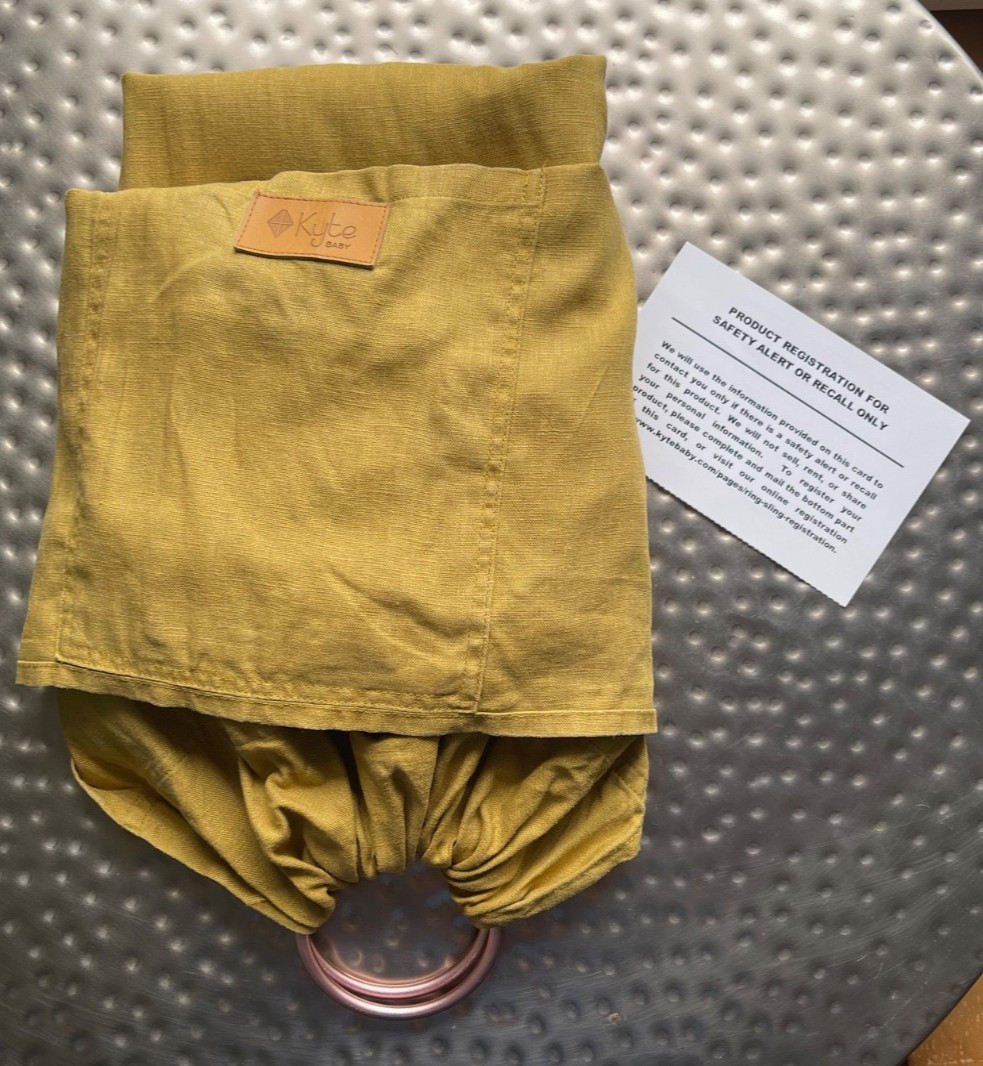 Kyte Baby Linen Ring Sling-Mustard Yellow w/Rose Gold Rings Carrier 8 to 35 lb