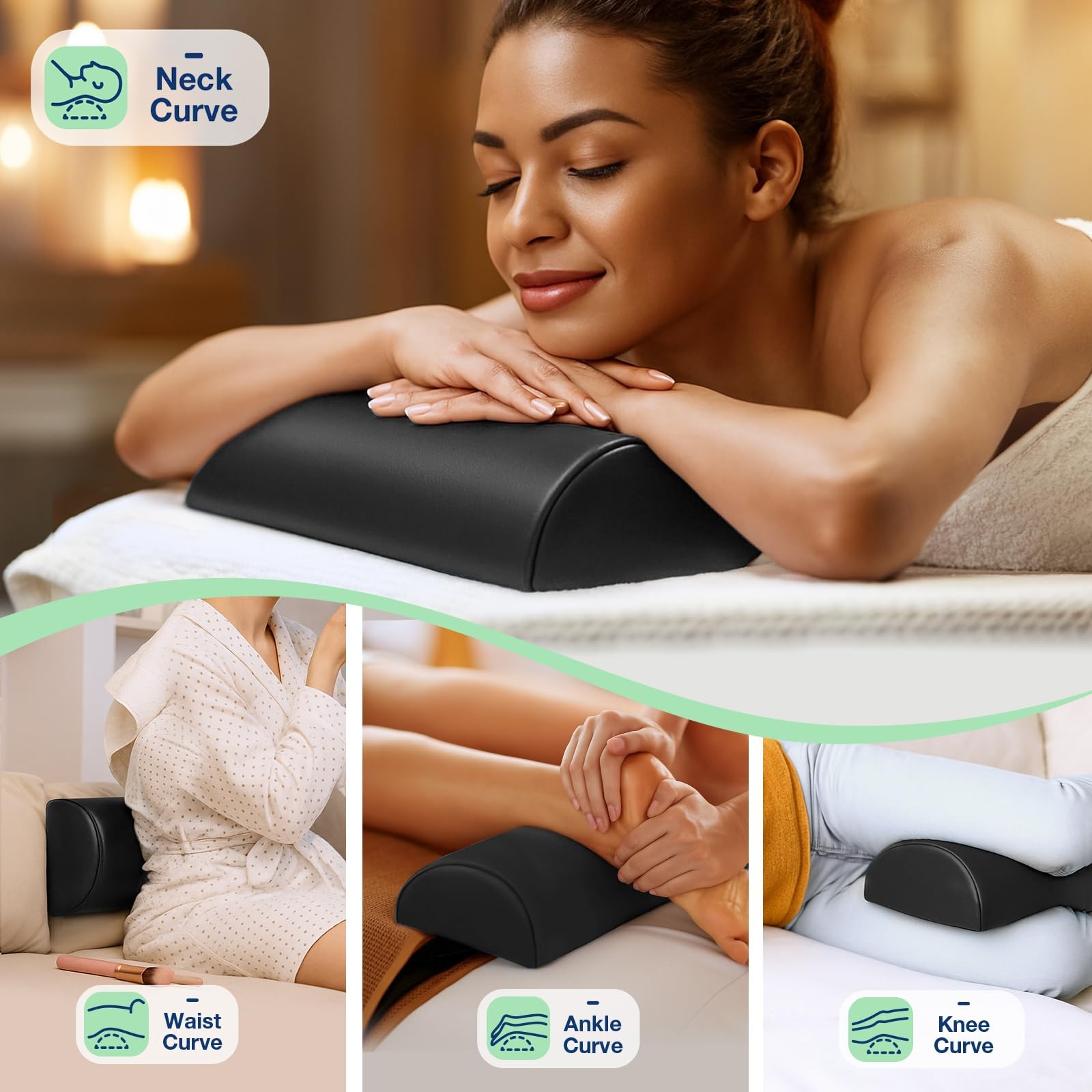 Half Round Massage Table Bolster Pillow with Strap Handle, 17 x 6 x 4 in PU L...