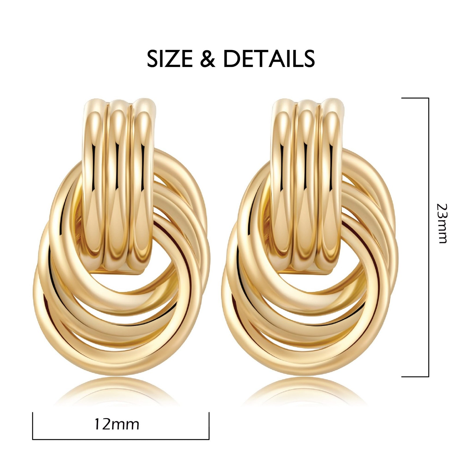 Chunky Gold Earrings for Women Knot Link Circle Statement Drop Dangle Classic...