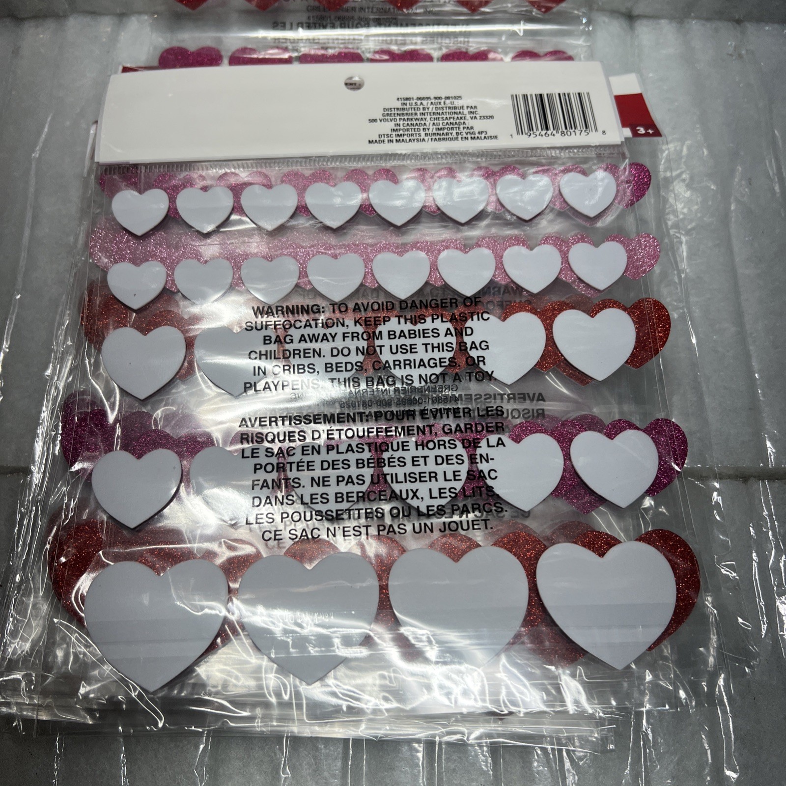 28 Packs of 32 Heart Glitter Foam Stickers Pink Red 896 Total Stickers