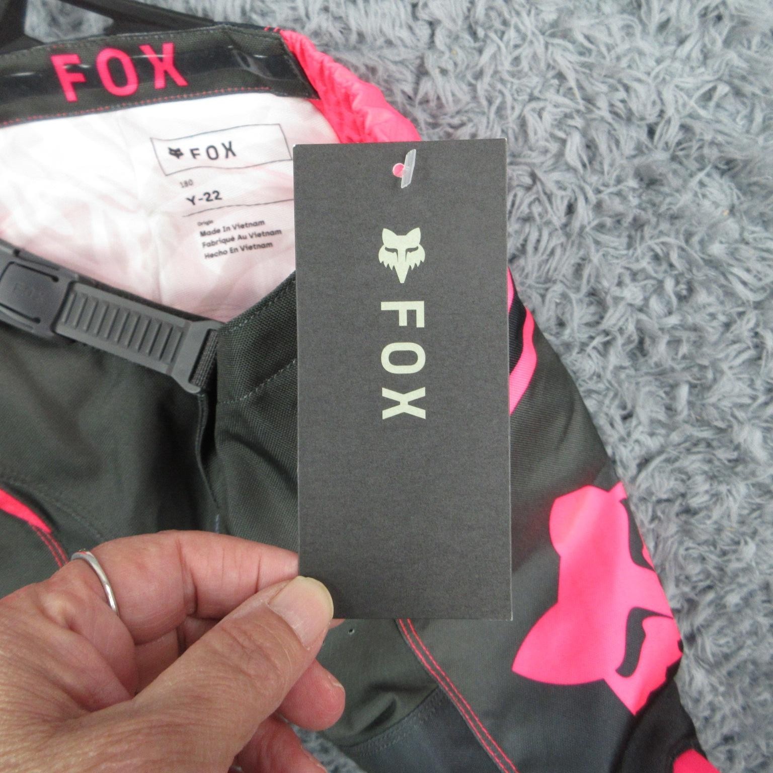 Fox Pants Girls 22 Black Pink Shield Riding Buckle Adjustable Slim 22X18.5 NWT