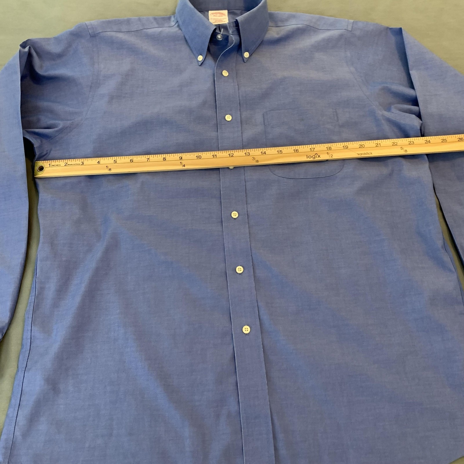 как выглядит Brooks Brothers Dress Shirt Mens 16 34/35 Blue Traditional Fit Non Iron Cotton фото