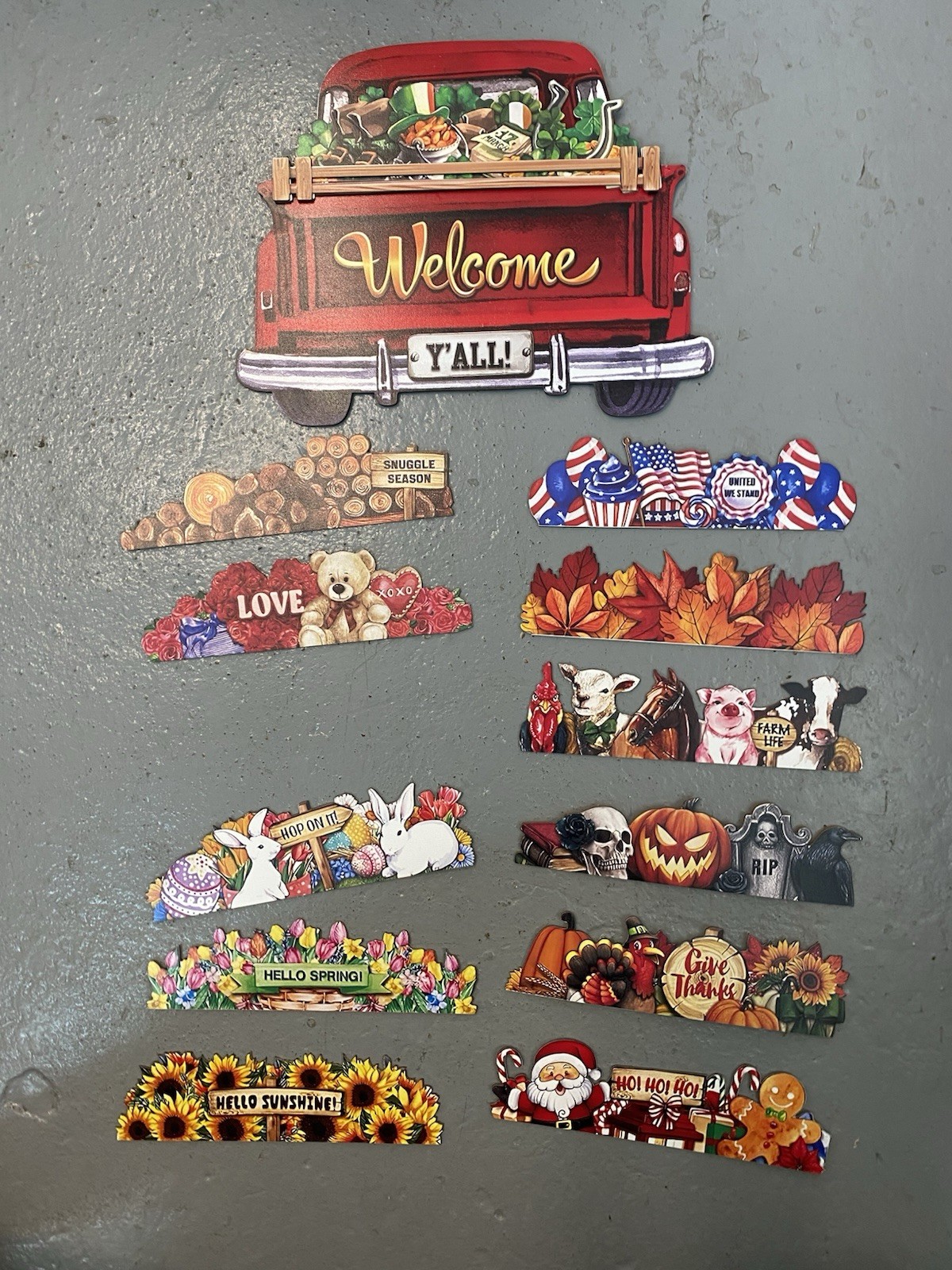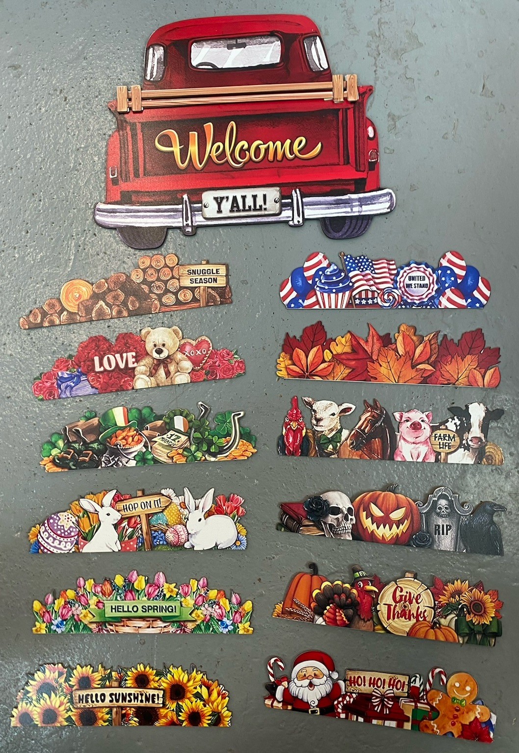 12 pcs Interchangeable Red Truck Welcome Sign Seasonal Farmhouse Door Decor