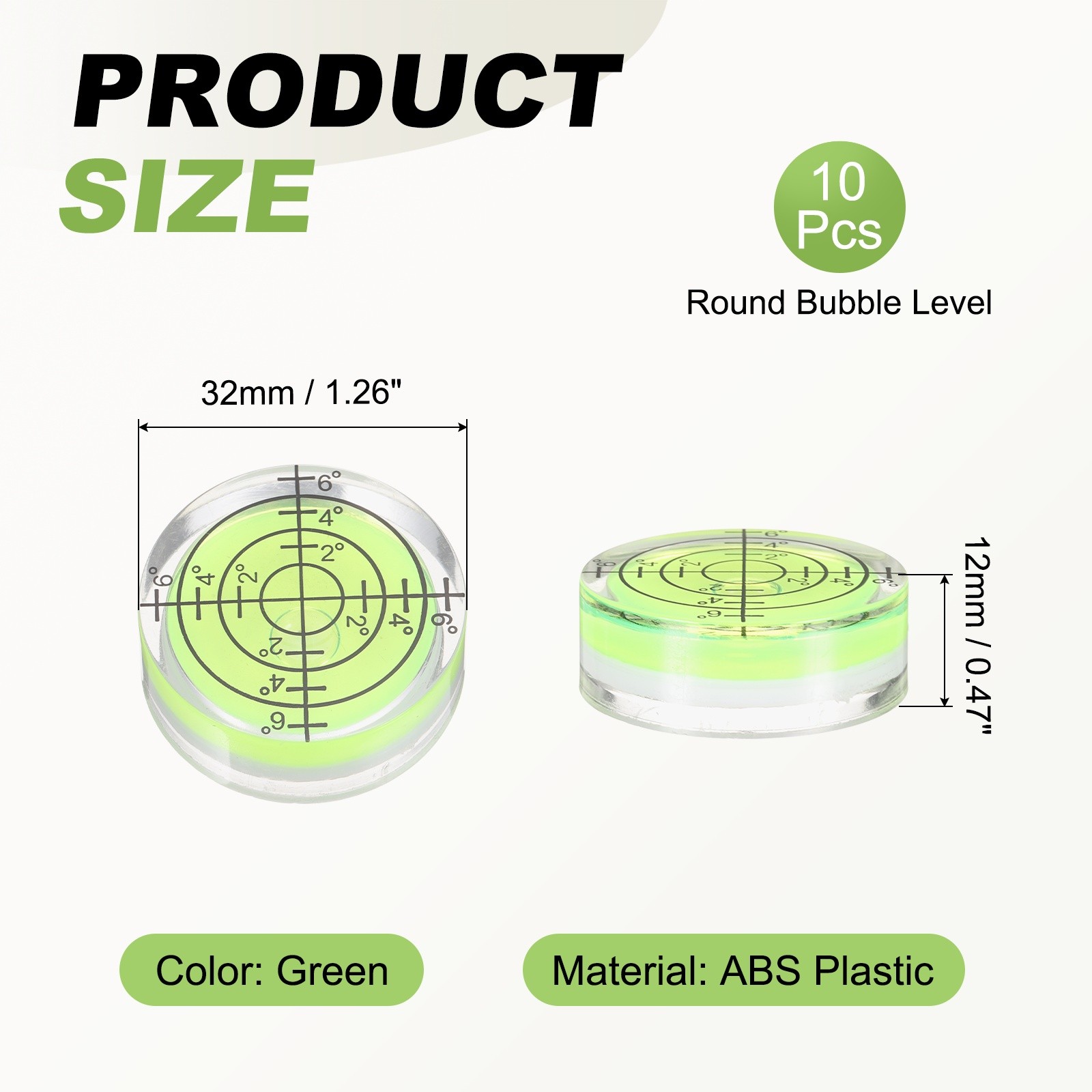 10pcs Round Bubble Level 32x12mm Mini Circular Bullseye Spirit Levels, Green