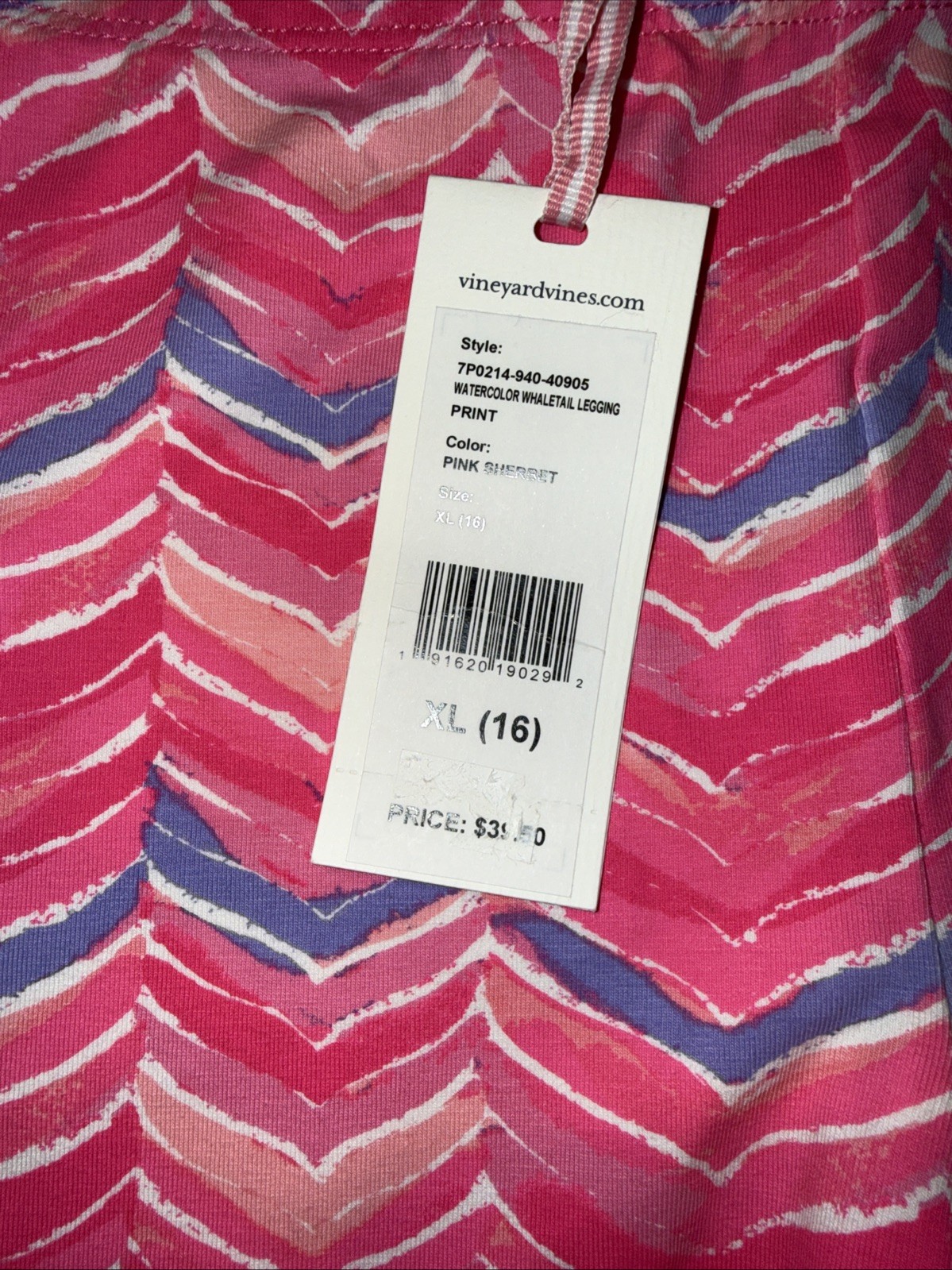 NWT Girls Vineyard Vines Performance Leggings Pink Purple White Size XL 16 Read