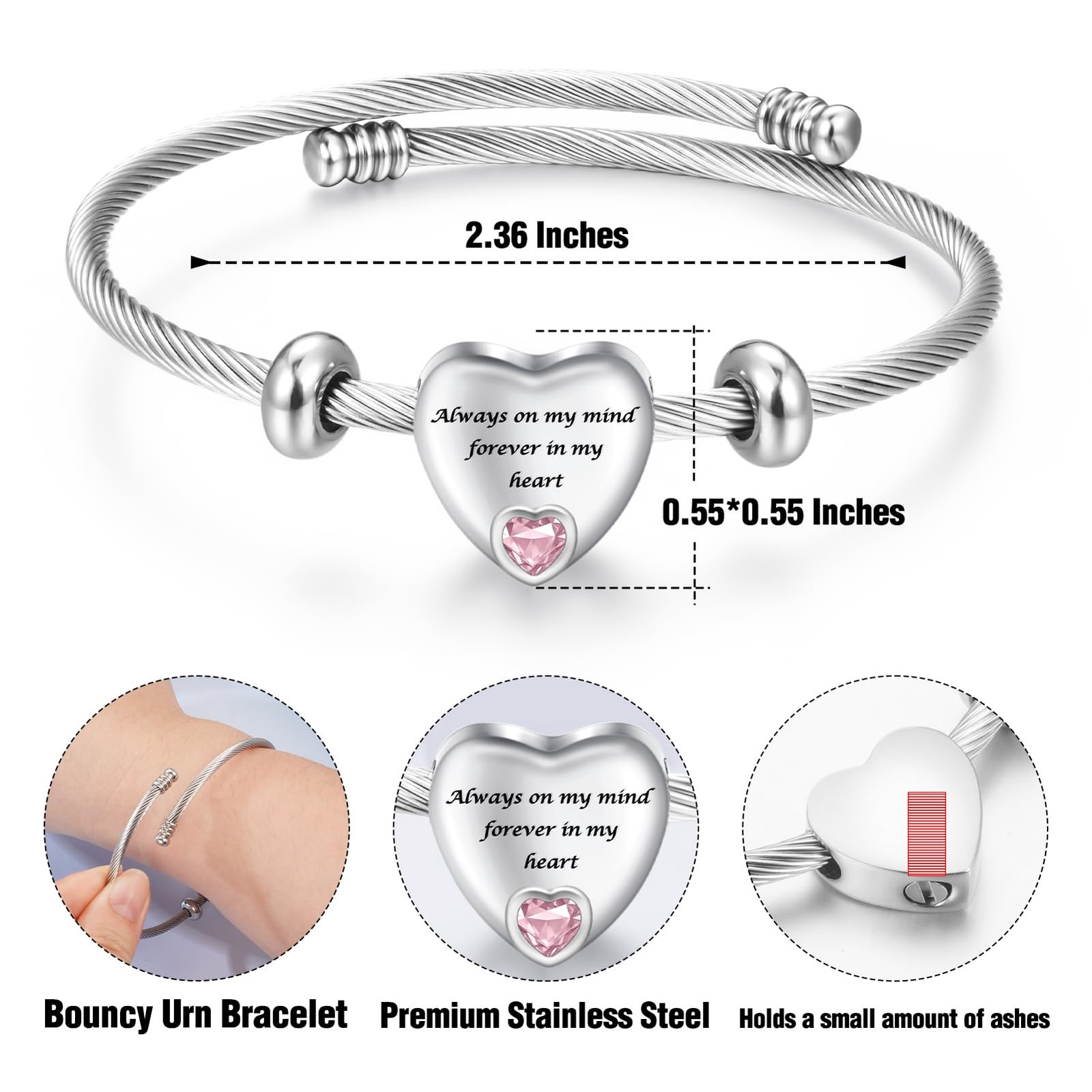 Urn Bracelet for Ashes Heart Cremation Jewelry for Ashes Stainless Steel Ash ...