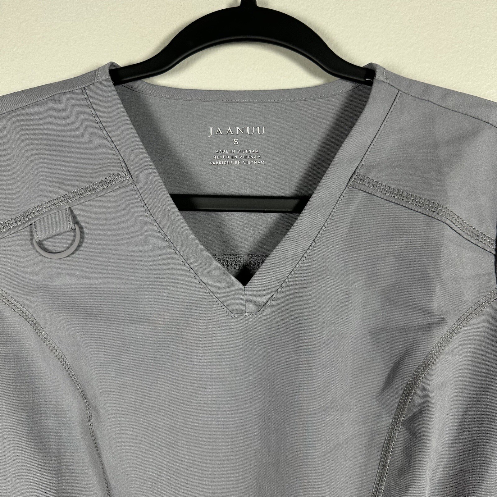 Jaanuu Small Gray 4 Pocket D-Ring Short Sleeve VNeck Scrub Top J96175