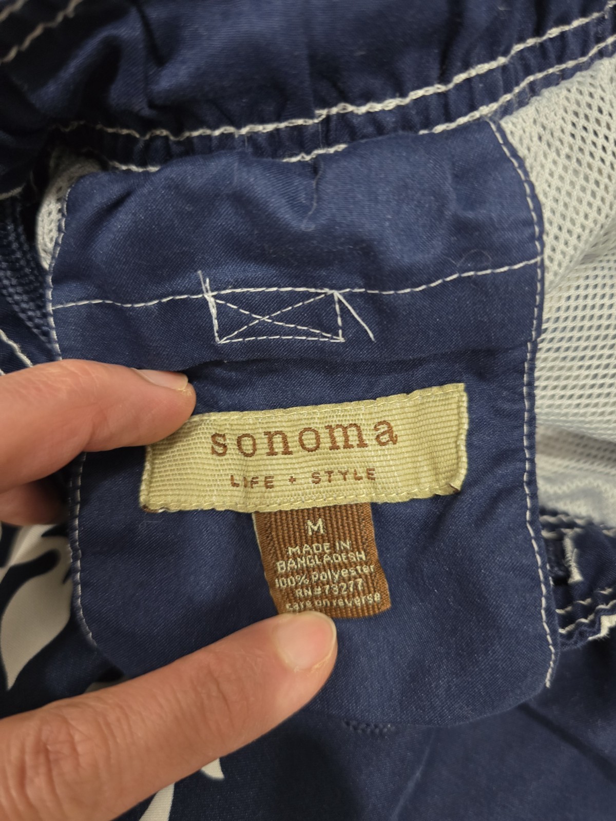 Sonoma Life Style Men's M Swim Trunks Board Shorts Blue White Floral Hibiscus