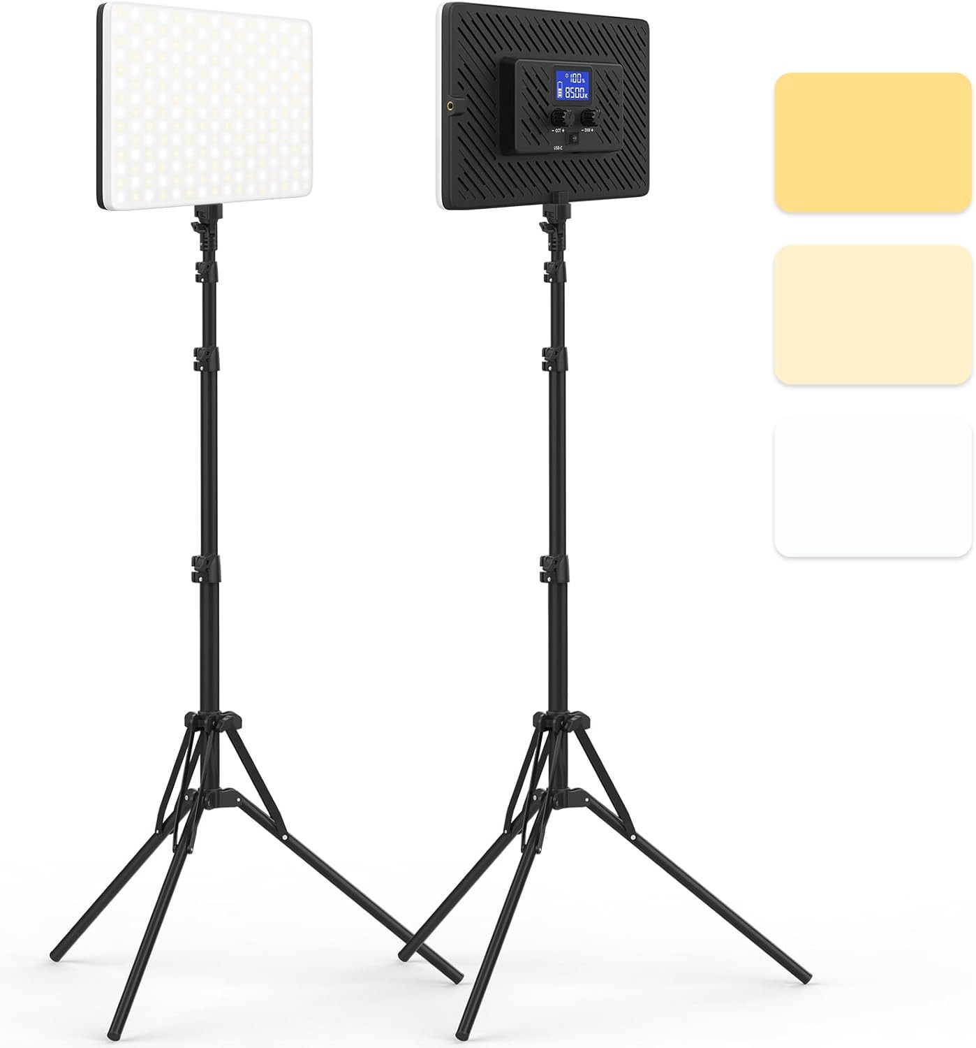 2 Packs LED Video Light with 63 Tripod Stand, 20W Bi-Color Photography Lightin