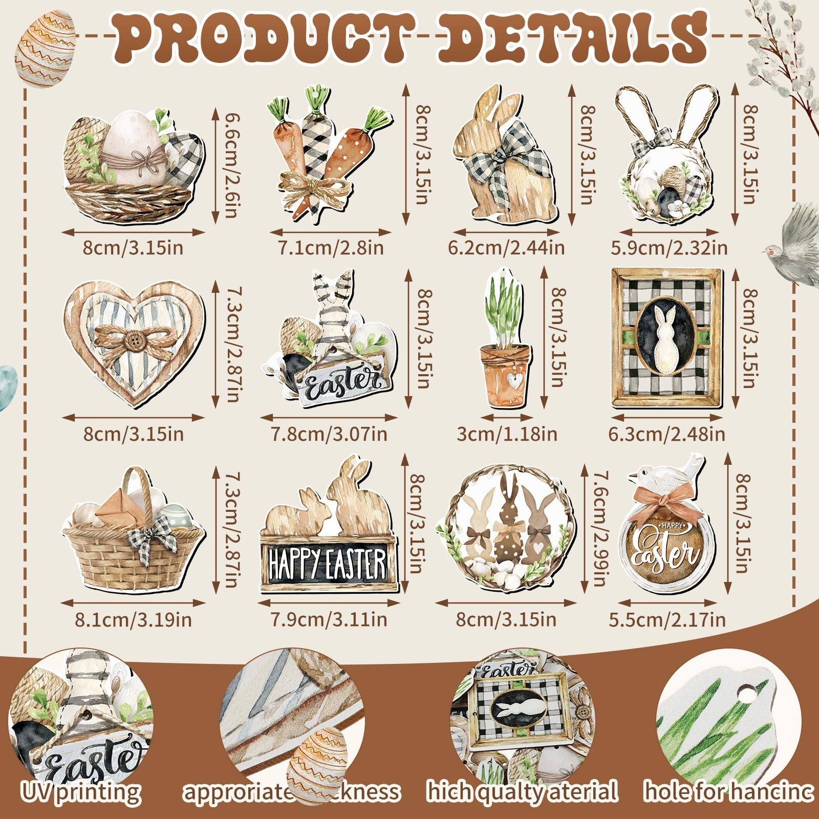 как выглядит 36 Pcs Easter Hanging Ornaments Happy Easter Wooden Ornament Easter Bunny Carrot фото