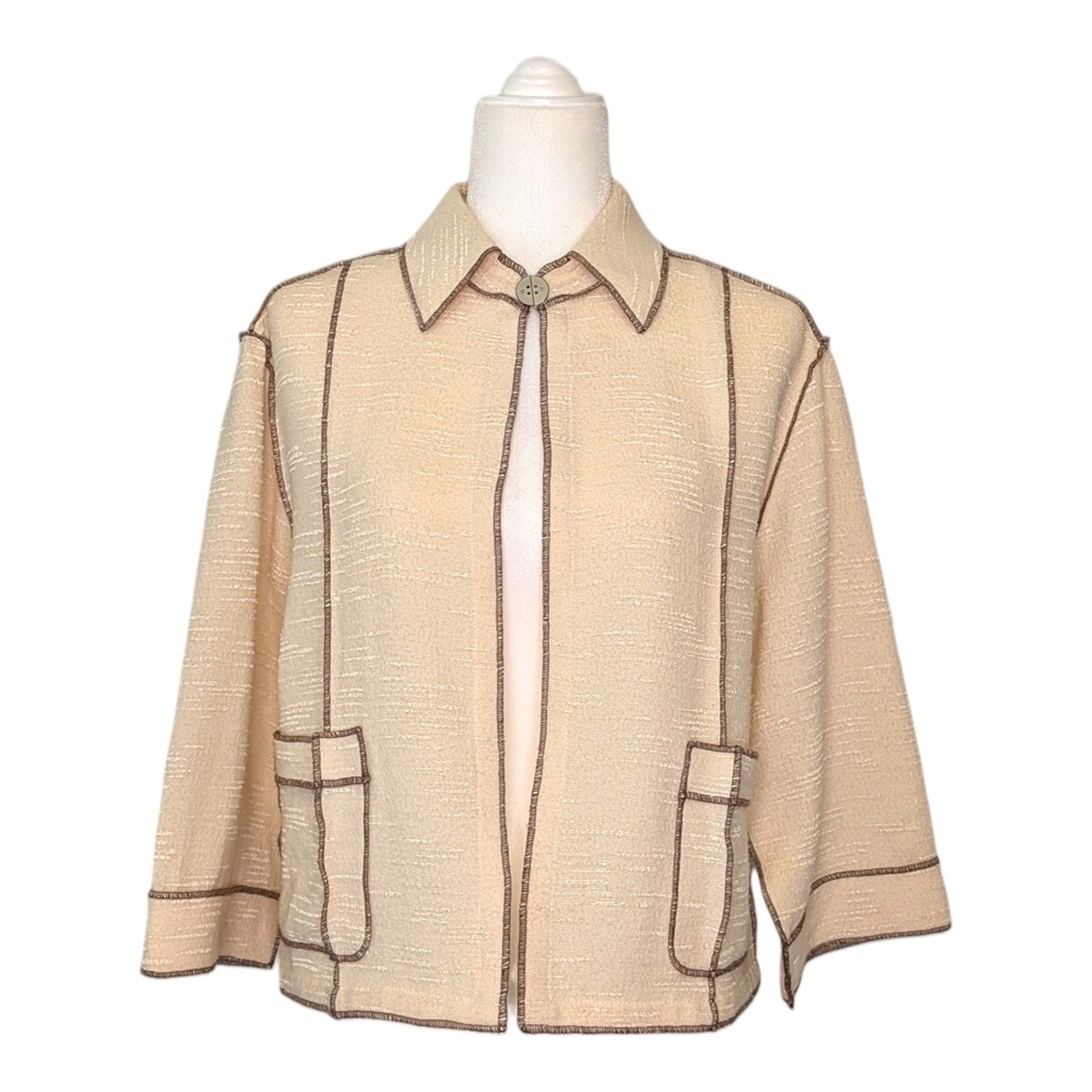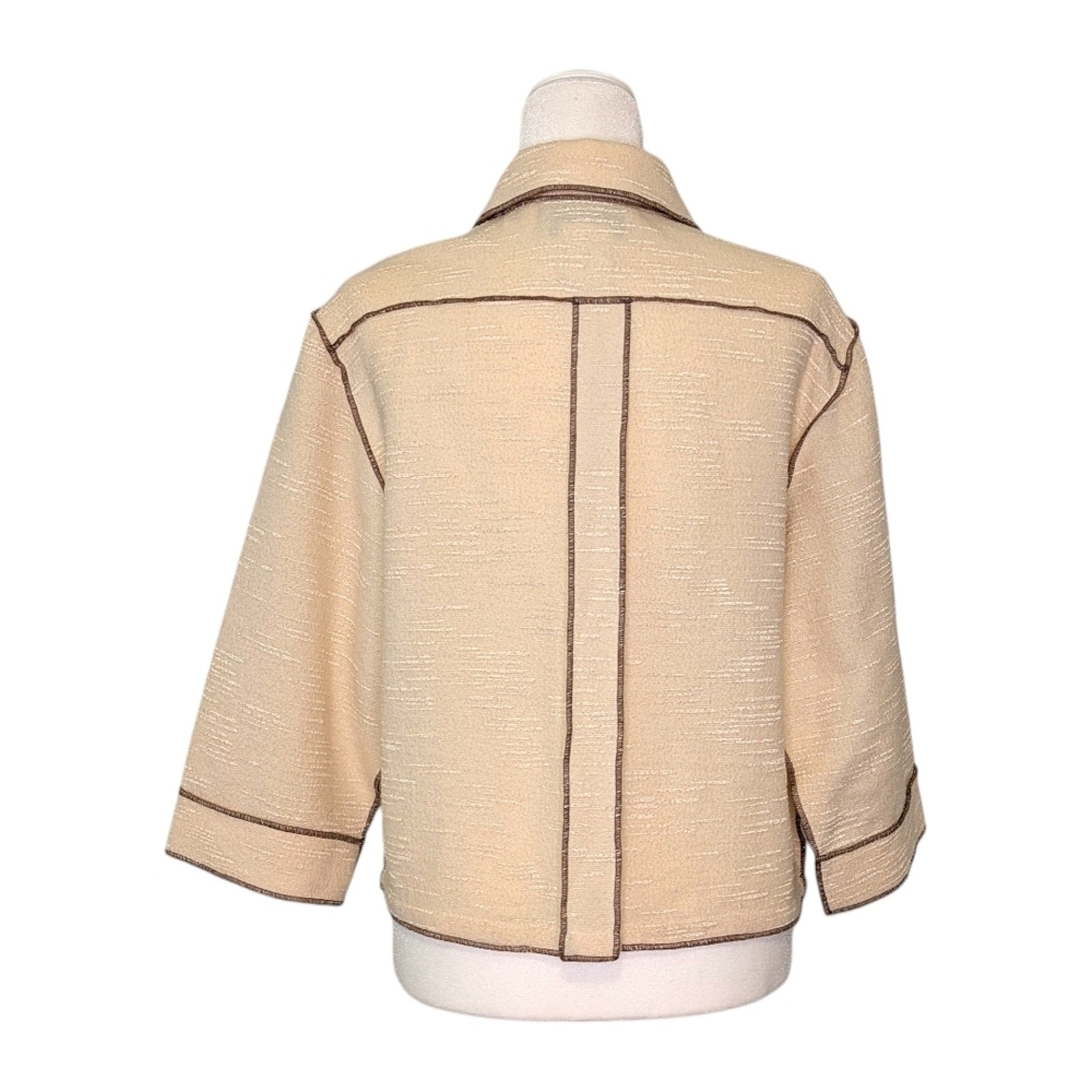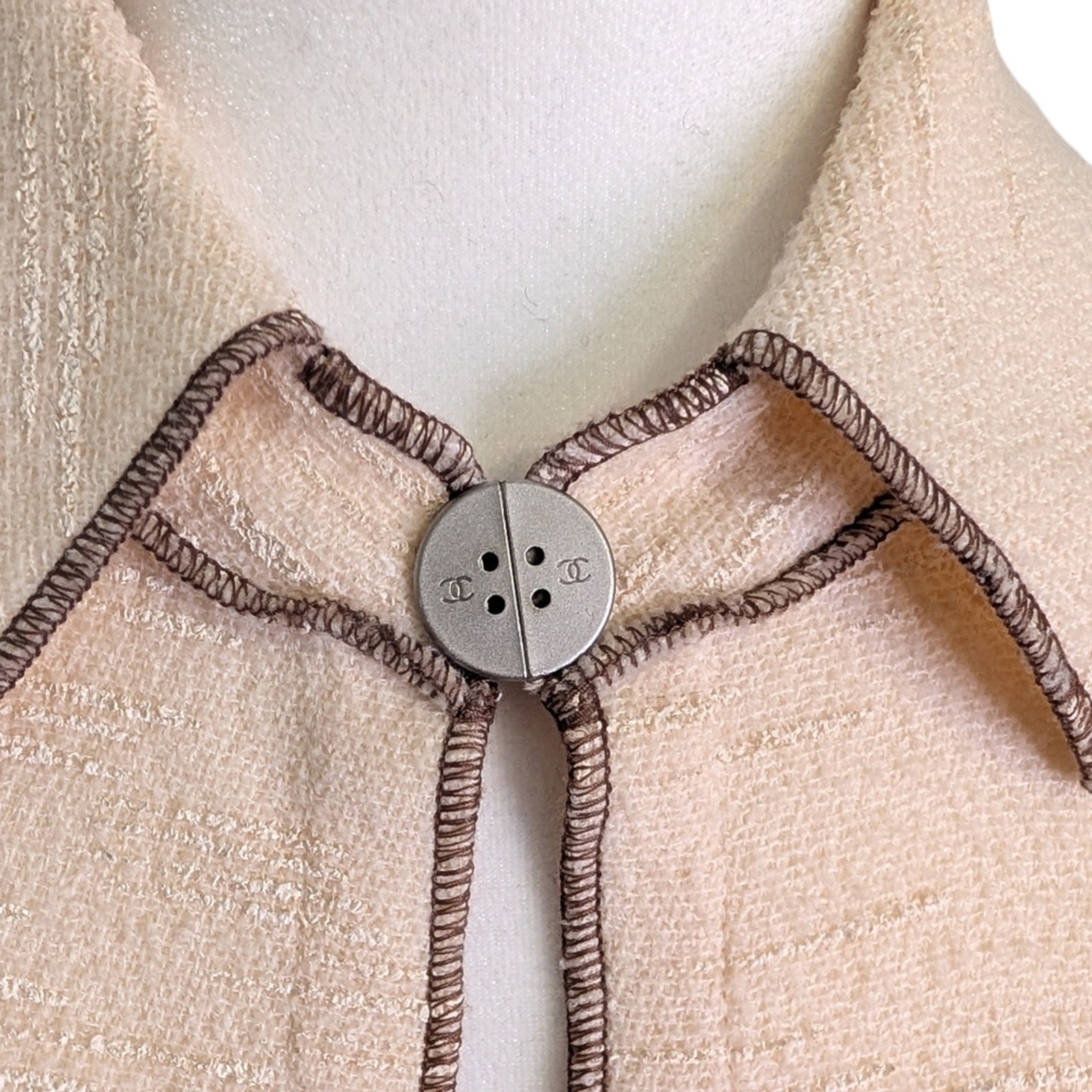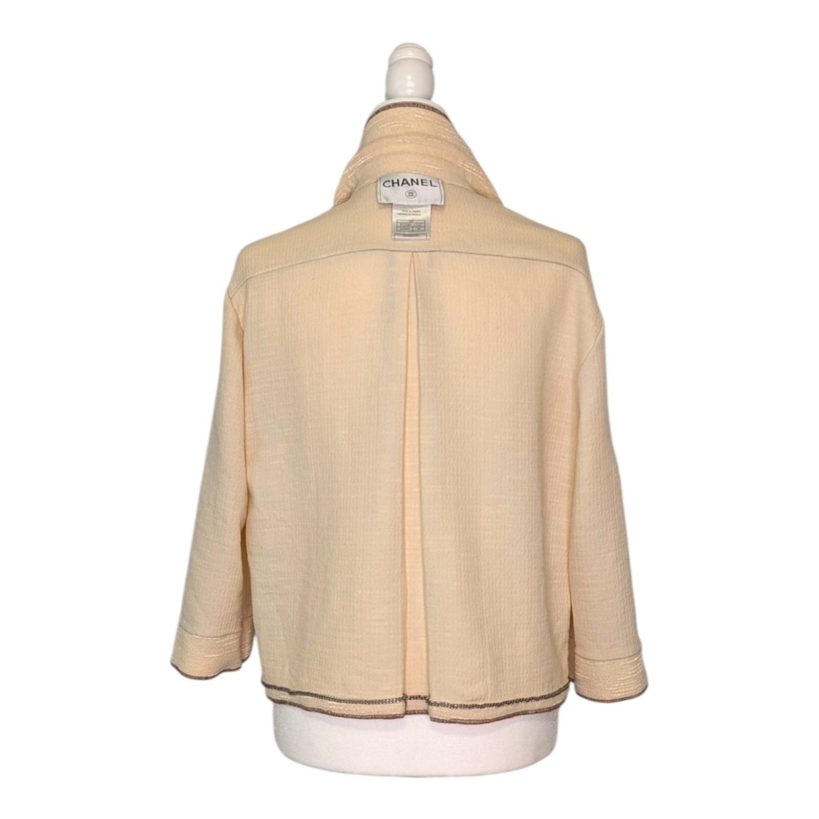 Chanel Spring 1999 Jacket CC Logo Button Contrast Stitch Boxy Fit Neutral FR 38