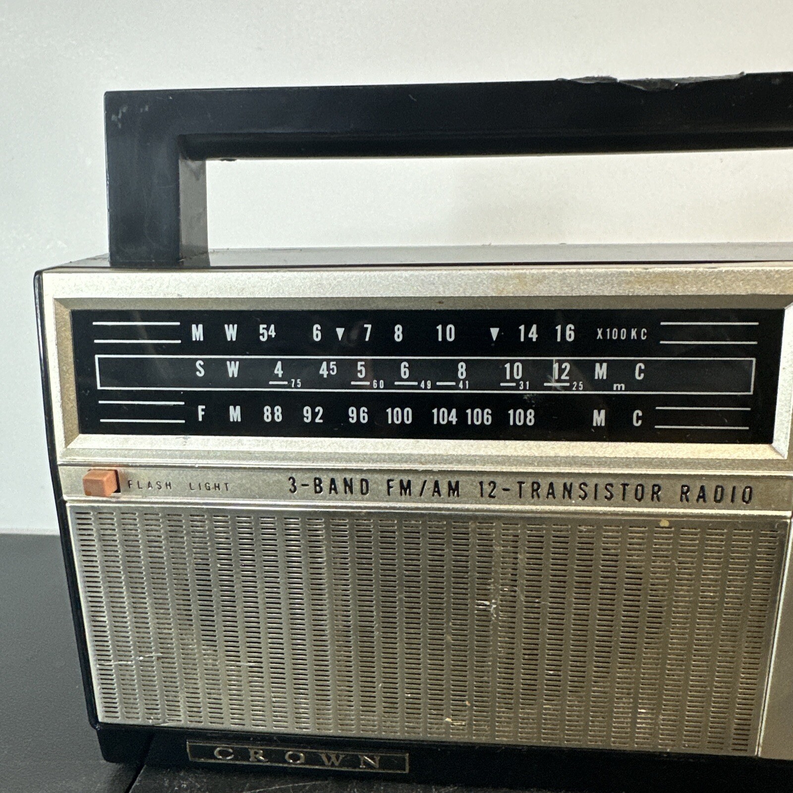 Vintage Crown Model TRF-1200. 3-Band FM/AM 12-Transistor Radio untested
