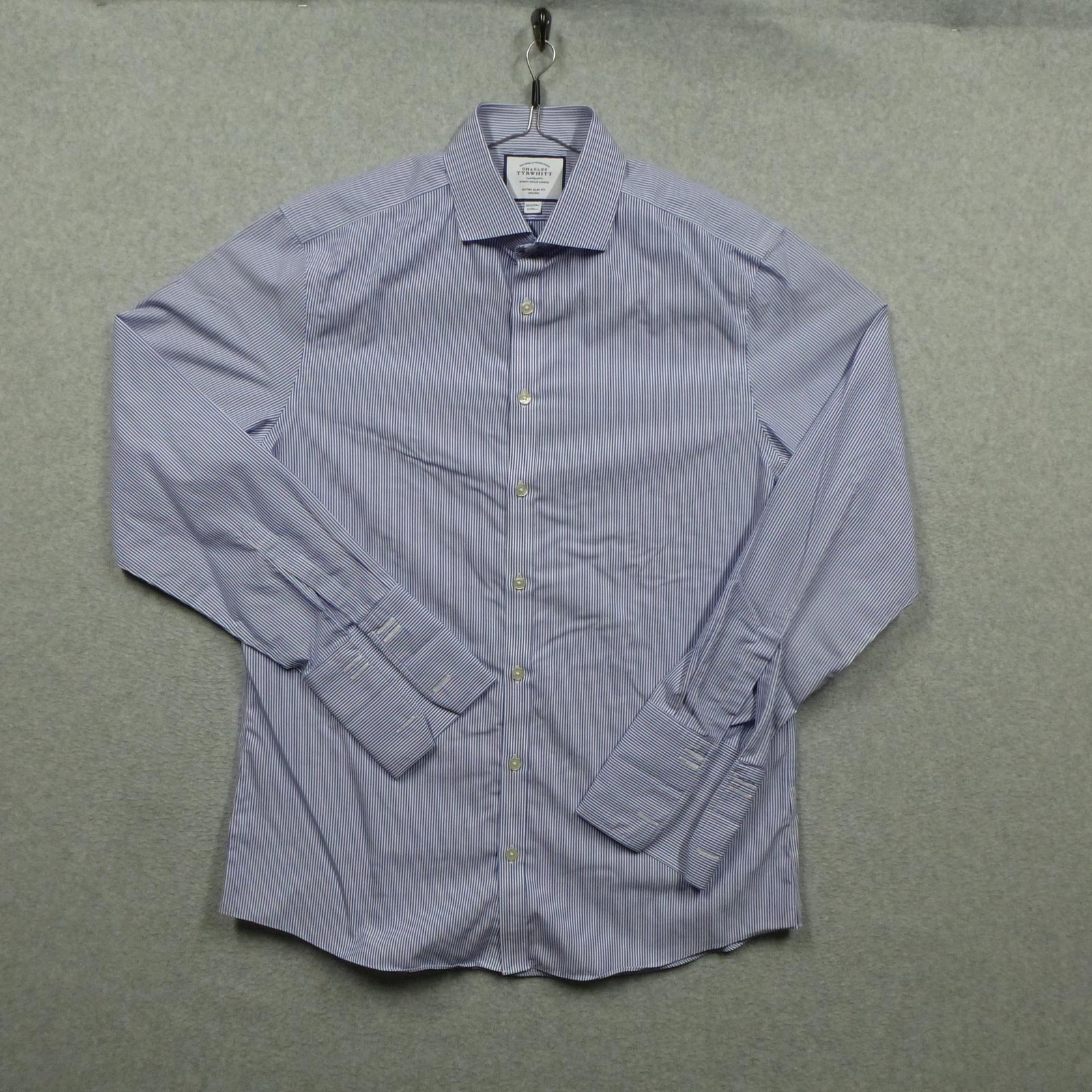 как выглядит Charles Tyrwhitt Shirt Mens 16.5 34/35 Blue Extra-Slim Fit Non-Iron French Cuff фото