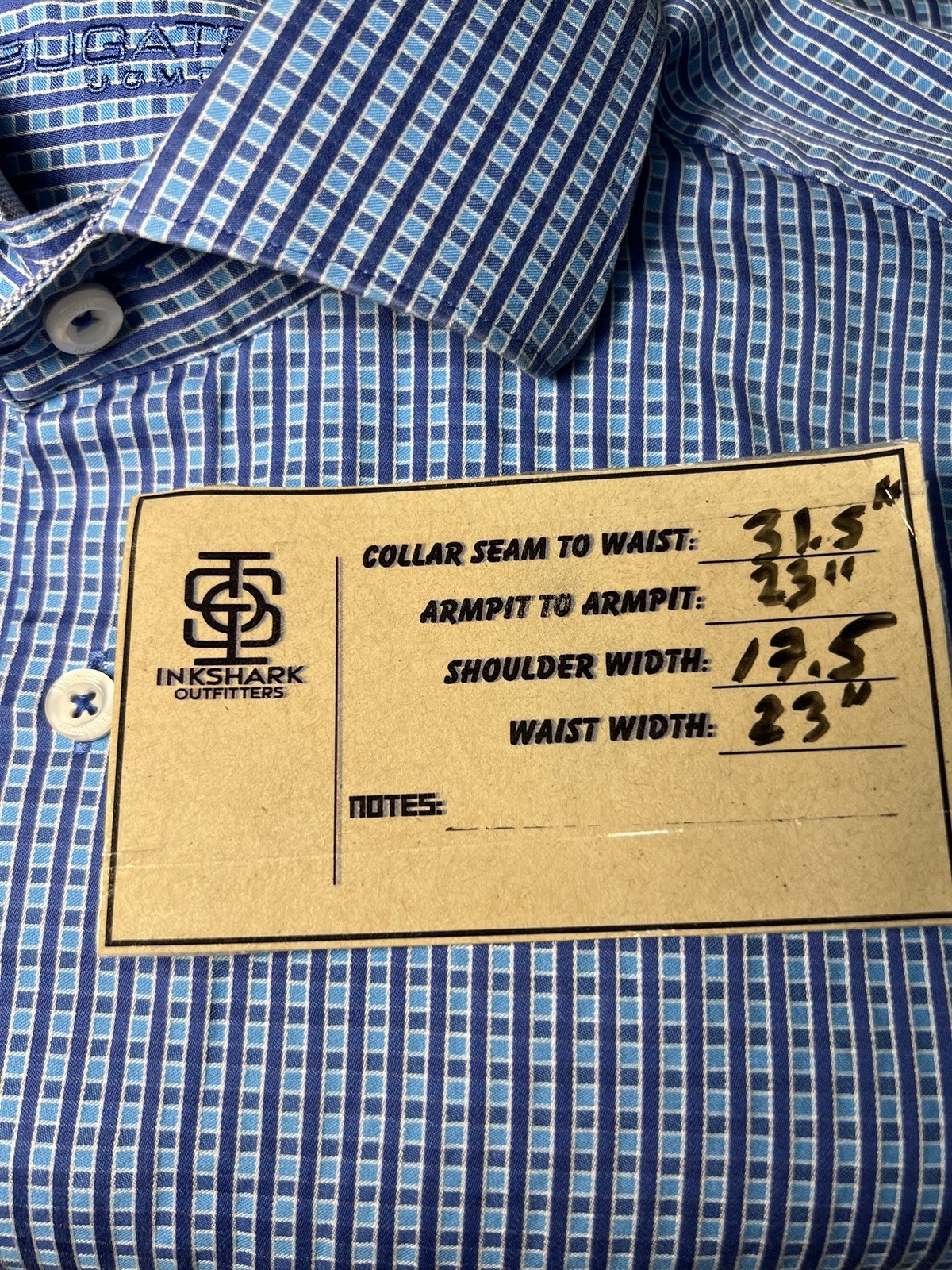 Bugatchi Uomo Shirt Mens Large Blue Plaid Button-up Long Sleeve XL 17 34/35