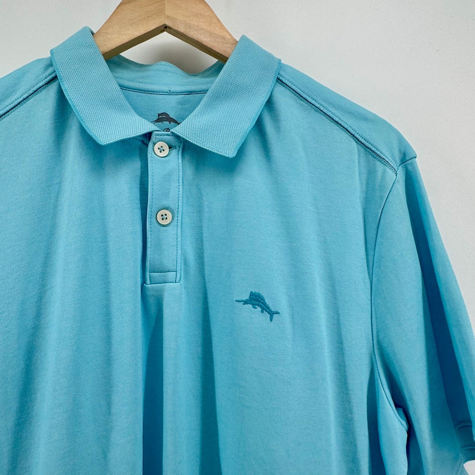 Tommy Bahama Mens Large Light Blue Short Sleeve Marlin Logo Polo Shirt L